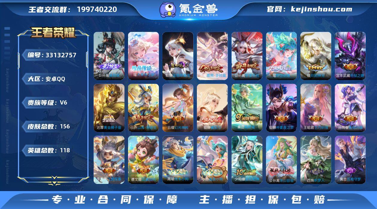 安卓Q-V6-至尊星耀IV段位-118英雄-156皮肤-2无双-1珍品传说-16传说-50史诗【英雄全皮】:敖隐全皮,空空儿全皮,少司缘全皮【无双皮肤】:李信问心剑,公孙离离恨烟【珍品传说】:瑶大耳狗之梦【传说皮肤】:朵莉亚神骥鸣幻洲,虞姬愿照岁时盈,云缨幻光神枪,桑启鸣野蒿,貂蝉曦玄引,小乔山海琳琅生,孙尚香音你闪耀,蔡文姬花朝如约,瑶时之祈愿,王昭君乞巧织情,李元芳飞鸢探春,公孙离祈雪灵祝,镜炽阳神光,达摩黄金狮子座,貂蝉仲夏夜之梦,宫本武藏地狱之眼【限定皮肤】:公孙离离恨烟,狄仁杰阴阳师,小乔山海琳琅生,赵云皇家上将,元歌无心,狄仁杰魔术师,达摩沙漠行僧,项羽海滩派对,王昭君凤凰于飞,兰陵王金庭之子,李元芳银河之约,李元芳云中旅人,鬼谷子五谷丰年,公孙离祈雪灵祝,沈梦溪大漠名商,裴擒虎擒涛扼浪,瑶时之祈愿,瑶山海碧波行,云中君纤云弄巧,西施玲珑珍味,桑启海盐诗旅,艾琳女武神,张良古海寻踪,鬼谷子天穹祈灯,大乔乘龙忆丹青,貂蝉曦玄引,鲁班七号蔬乡物语,李元芳蔬乡物语,刘邦剑破天穹,芈月浮光幕影【年限皮肤】:王昭君凤凰于飞,公孙离祈雪灵祝,小乔山海琳琅生,瑶山海碧波行,大乔乘龙忆丹青,虞姬愿照岁时盈【赛季限...