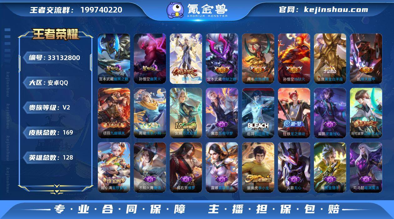 安卓Q-V2-永恒钻石III段位-128英雄-169皮肤-6传说-46史诗【英雄全皮】:孙权全皮【传说皮肤】:司空震愿照山河定,典韦战鼓燎原,铠绛天战甲,张良黄金白羊座,宫本武藏地狱之眼,孙悟空地狱火【限定皮肤】:姜子牙天穹之誓,杨戬破阵退雄兵,狄仁杰阴阳师,赵云皇家上将,高渐离玩趣恶龙,元歌无心,马可波罗山海玄木吟,狄仁杰魔术师,狄仁杰万华元夜,达摩沙漠行僧,项羽海滩派对,老夫子醍醐杖,程咬金演武夺筹,李元芳云中旅人,钟馗驱傩正仪,鬼谷子五谷丰年,裴擒虎李小龙,裴擒虎擒涛扼浪,云中君纤云弄巧,上官婉儿梁祝,嫦娥暖冬兔眠,鲁班大师探海日志,桑启海盐诗旅,暃星界游侠,张良古海寻踪,鬼谷子天穹祈灯,姬小满妄想食味,刘邦剑破天穹,周瑜熔金海岸【年限皮肤】:马可波罗山海玄木吟,司空震愿照山河定【赛季限定】:老夫子醍醐杖,狄仁杰万华元夜,程咬金演武夺筹,钟馗驱傩正仪,达摩沙漠行僧,李元芳云中旅人,桑启海盐诗旅,裴擒虎擒涛扼浪,鲁班大师探海日志,张良古海寻踪,鬼谷子天穹祈灯,刘邦剑破天穹,姜子牙天穹之誓,东皇太一噬灭天穹,太乙真人谧流熔炉,钟馗虚灵犬护,甄姬逆浪荇歌,亚瑟荣光之誓,项羽九幽镇关【战令限定】:暃星界游侠...