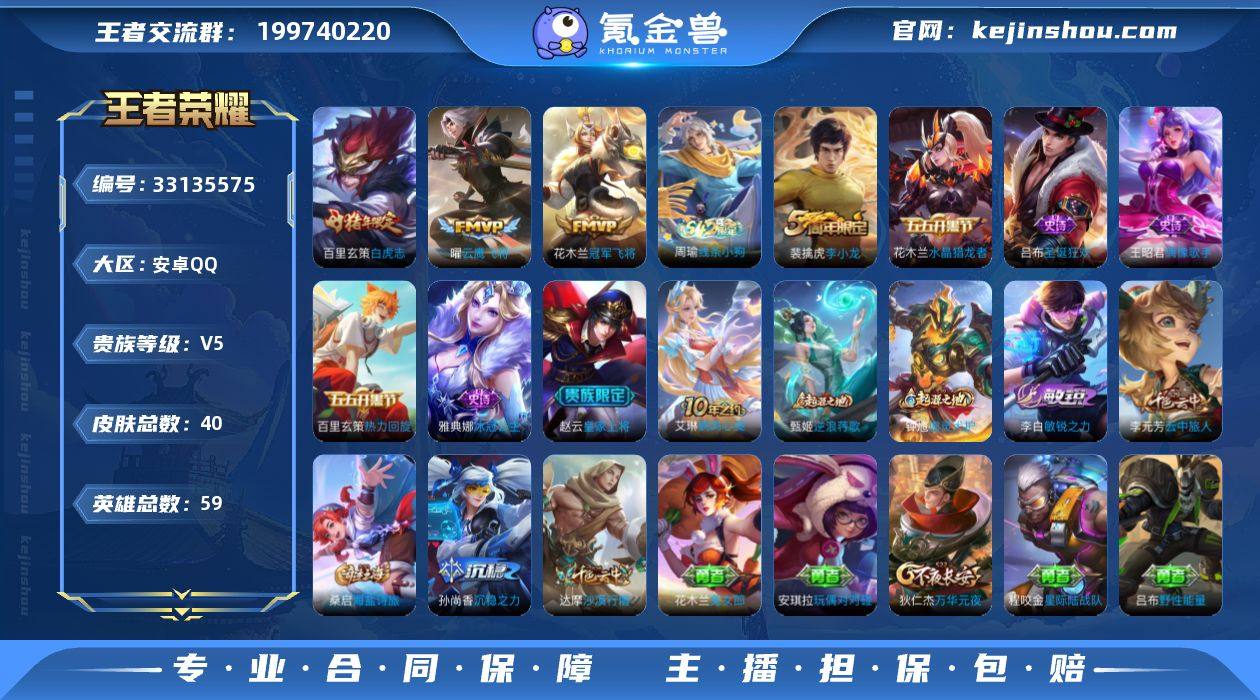 贵族5/皮肤40/传说3/史诗7/英雄59/云鹰飞将/白虎志/冠军飞将/皇家上将/万华元夜(s22)/沙漠行僧(s26)/海滩派对/云中旅人(s29)/大漠名商(s28)/李小龙/海盐诗旅(s30)/虚灵犬护/逆浪荇歌/线条小狗-周瑜/热力回旋/冰冠公主/水晶猎龙者/圣诞狂欢/偶像歌手/鹤鸣心笺/野性能量/敏锐之力/沉稳之力/命运角斗场/兔女郎/玩偶对对碰/星际陆战队(程咬金)/教廷特使/归虚梦演-曜/灼热之刃/花见巫女/魇语军师/威尼斯狂欢/绝影神枪/三太子/激情绿茵/剑舞者/异域舞娘/金属狂潮/木偶奇遇记
