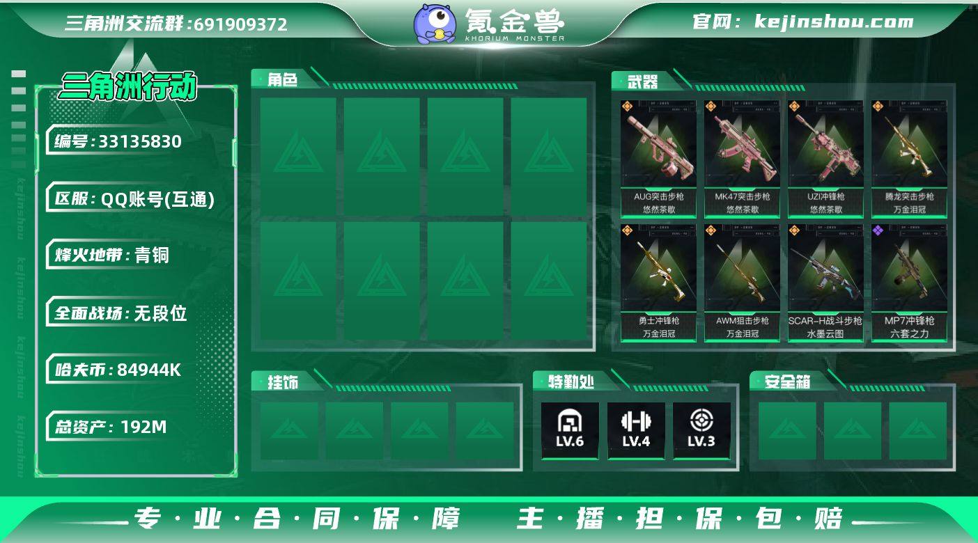 【PTSJZ3138】总资产(M):192M/哈夫币(K):84944K/哈夫币(K):84944K/传说枪皮数:7/全面战场等级:1_段位:无段位/烽火地带等级:56_段位:青铜/近战-黑鹰/AUG突击步枪-悠然茶歇/SCAR-H战斗步枪-水墨云图/腾龙突击步枪-万金泪冠/MK47突击步枪-悠然茶歇/UZI冲锋枪-悠然茶歇/勇士冲锋枪-万金泪冠/AWM狙击步枪-万金泪冠/MP7冲锋枪-六套之力/S12K霰弹枪-曙光/M700狙击步枪-竞技风/SMG-45冲锋枪-行动开启/QSZ92G-一帆风顺/G18-星链科技/G18-哈夫克航天/QBZ95-1突击步枪-高雅黑/K416突击步枪-几何迷彩/K416突击步枪-高雅黑/AUG突击步枪-浅蓝涂装/SG552突击步枪-浅蓝涂装/SG552突击步枪-狂欢/SCAR-H战斗步枪-数码迷彩/G3战斗步枪-高雅黑/CAR-15突击步枪-狂欢/MP5冲锋枪-黄蜂/Vector冲锋枪-几何迷彩/UZI冲锋枪-海色/UZI冲锋枪-狂欢/QJB201轻机枪-典雅/SR-25射手步枪-黑巧甜心/SV-98狙击步枪-红色涂装/挂饰-万金泪冠/挂饰-悠然茶歇