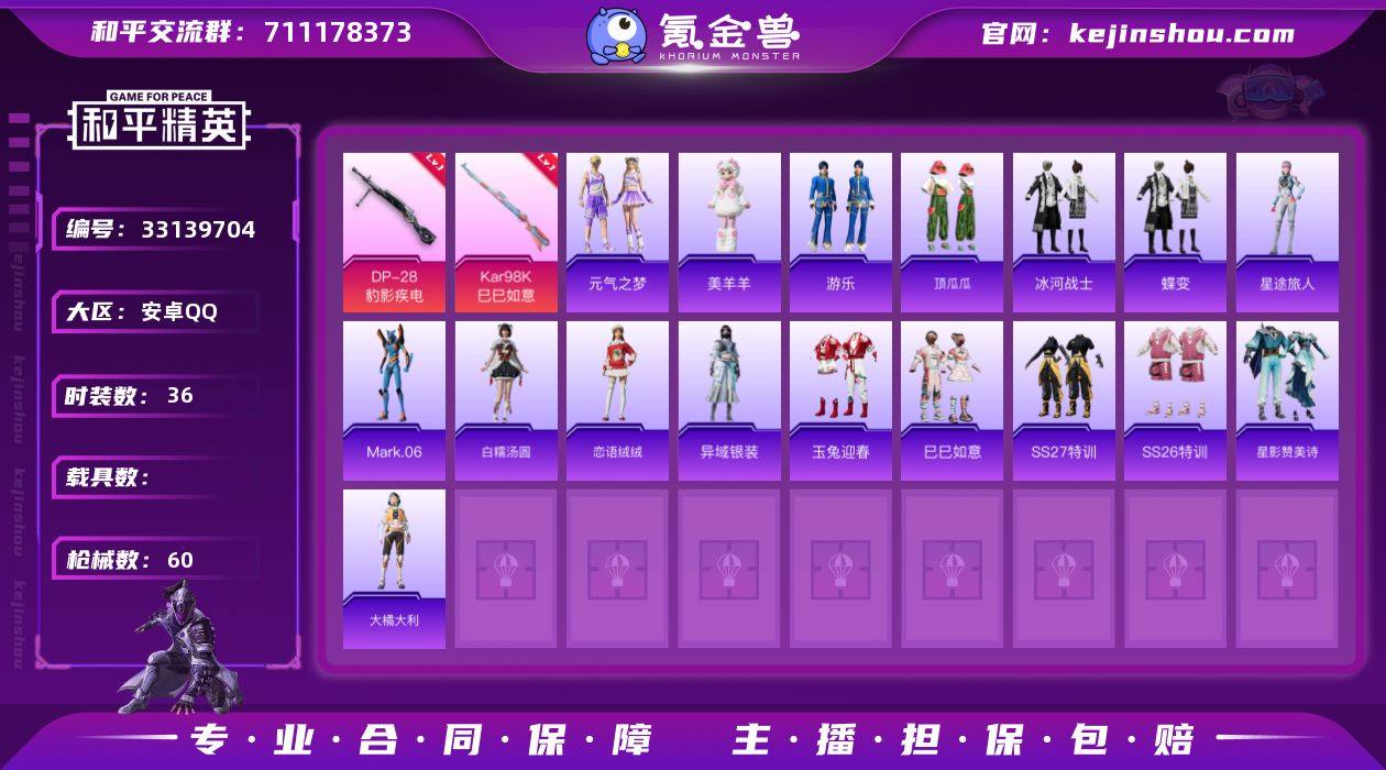 M1047494【地铁满天赋蓝螳螂 2特效枪】安卓手Q-2特效枪-36套装-60枪皮-1王牌印记-英勇黄金Ⅲ-16321热力值【2特效枪】Kar98K-巳巳如意[5级],DP-28-豹影疾电[5级]【6飞行器】炫彩糖果飞行器,破刃行动尾迹,顶峰精英尾迹,鸡智如我飞行器,空岛之星尾迹,异域银装飞行器【94其它衣服和枪皮】柠萌假日,星影赞美诗,SS26特训,SS27特训,霓虹街区,SS29特训,SS31特训,恋语绒绒,SS34特训,角色-Mark.06,薄荷星砂,香桃花海,竞技名士,元气之梦,战术大师,玉兔迎春,SS35特训,特战装甲,SS32特训,游乐,都市魅力,异域银装,龙魂突击队,巳巳如意,星途旅人,大橘大利,炫彩糖果,萌鸡速递,蝶变,冰河战士,云魄琉璃,玩偶服-美羊羊,白糯汤圆,SS33特训,顶瓜瓜,海岛探路者,Mk14-薄荷星砂,SLR-霓彩脉冲,SCAR-L-星途旅人,AMR-喜羊羊与灰太狼,S12K-霓彩脉冲,破片手榴弹-拽到爆炸,Mk14-冰河战士,UZI-炫彩糖果,M762-天降萌叽,VSS-香桃花海,P90-巳巳如意,S12K-破晓战魂,Kar98K-顶峰精英,S12K-守护天翼,QBZ-彩虹符号,破片手榴弹-呆爆全场,AKM-彩虹符号,M249-破晓战魂,AKM-破晓战魂,AKM-涂鸦街区,S1897-荧海星豚,蜜獾-鸡智如我,GROZA-紫矿核心,S686-巳巳如意,烟雾弹-冰氧夏日,M16A4-冰河战士,UZI-冰河战士,20-H-星途旅人,...