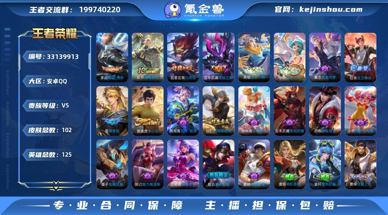 WZ23486|【可实名】精品脱坑典藏多传说号 可二次 低价出 安卓QQ 102皮 贵族5级 1典藏 3传说 16史诗【荣耀典藏】鸣剑·曳影【传说皮肤】神树通天,地狱之眼,白虎志【史诗皮肤】线条小狗,百相守梦,圣诞狂欢,金属风暴,魅力维加斯,摇滚巨星,水果甜心,鬼安卓QQ 102皮 贵族5级 1典藏 3传说 16史诗【荣耀典藏】鸣剑·曳影【传说皮肤】神树通天,地狱之眼,白虎志【史诗皮肤】线条小狗,百相守梦,圣诞狂欢,金属风暴,魅力维加斯,摇滚巨星,水果甜心,鬼剑武藏,缤纷独角兽,埋骨钱,龙之律动,鹰眼统帅,偶像歌手,李小龙,皇家上将,天秀·音浪【勇者皮肤】荣光之誓,雾影缉谜,线条小狗,锦麟游梦,罗小黑战记,百相守梦,逐霄之志,逆浪荇歌,鹤鸣心笺,踏浪烽翎,溯影追猎,极光幻客,落日弦歌,克喵,死亡骑士,黄金武士,纽约教父,汉昭烈帝,万事如意,朔风刀,天使之翼,玩偶对对碰,未来纪元,混沌棋,古海寻踪,缤纷绘卷,魅影绮裳,危途狂花,救世之瞳,疑决卦,虹云星官,海盐诗旅,鲨炮海盗猫,幻泉雾影,御旌,万华元夜,阴阳师,花好人间,演武夺筹,御霄,醍醐杖,红桃皇后,兔女郎,擒涛扼浪,掌控之力,忍·炎影,拳王,驱傩正仪,爱心护理,教廷特使,街头霸王,海滩派对,玩趣恶龙,原初探秘者,天穹祈灯,探海日志【其他皮肤】赤焰之缨,花见...
