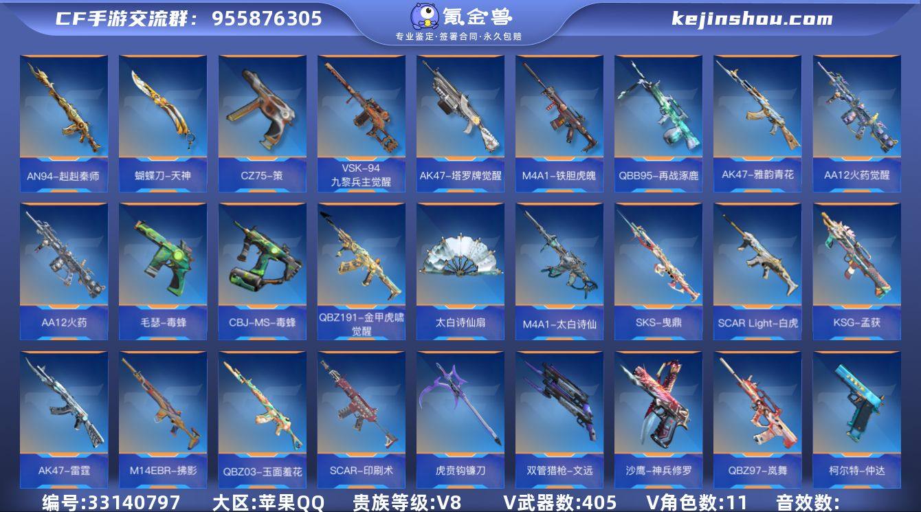 【CFMG1763】VIP8/405V/心至尊/奉先套/王者之影/王者之心/王者之锋/王者之腾/王者之魂/王者幻神/王者之霆/QBZ03-王者蔷薇/王者之技/M12S-雷霆王者/王者新星/王者之尊/KSG-孟获/CZS2-仲康/AN94-盖/81式-光明之神/MK47-仁德/M4A1-仲达/AK47-奉先/M200-幻神/AWM-妙才/COP357-星象/王者之技-冰霜奇迹/王者之藤-冰霜奇迹/QBZ03-王者蔷薇-冰霜奇迹/M4A1-仲达-烽火连城/王者幻神-燃竞之巅/葵/幽灵刀锋-觉醒/关小雨/零水下丽影/甄梦/夏日灵狐-X/炽天使-X/零-新生/虹儿/钟小魁/刀锋-枪战王者/AK47-火麒麟/AK47-猩红传说/AK47-沙漠郡主-超觉/AK47-血武士/AK47-黑鲨/AK47-春雅觉醒/AK47-木兰/AK47-雷霆/AK47-雅韵青花/AK47-塔罗牌觉醒/AK47-谜城烟火/M4A1-雷神/M4A1-黑骑士/M4A1-黑龙/M4A1-死神/M4A1-龙血/M4A1-机械迷城/M4A1-赛博雷神/M4A1-雷霆/M4A1-海骑士/M4A1-运输船/M4A1-千变/M4A1-太白诗仙/M4A1-铁胆虎魄/SCAR-幽暗骑士/SCAR Light-白虎/SCAR-探星者/SCAR-印刷术/SCAR-心动PICK/AN94-赳赳秦师/AUG-机械纪元/FAMAS-湮灭/9A91-天神/M14EBR-天神/M14EBR-拂影/M14EBR-葫芦山庄/AK12-天启/QBZ03-金色蔷薇/QBZ03-死神/QBZ03-玉面羞花/HK417-炎龙铠甲/QBZ19-天使/G36-李星云/MK47-云舞/...