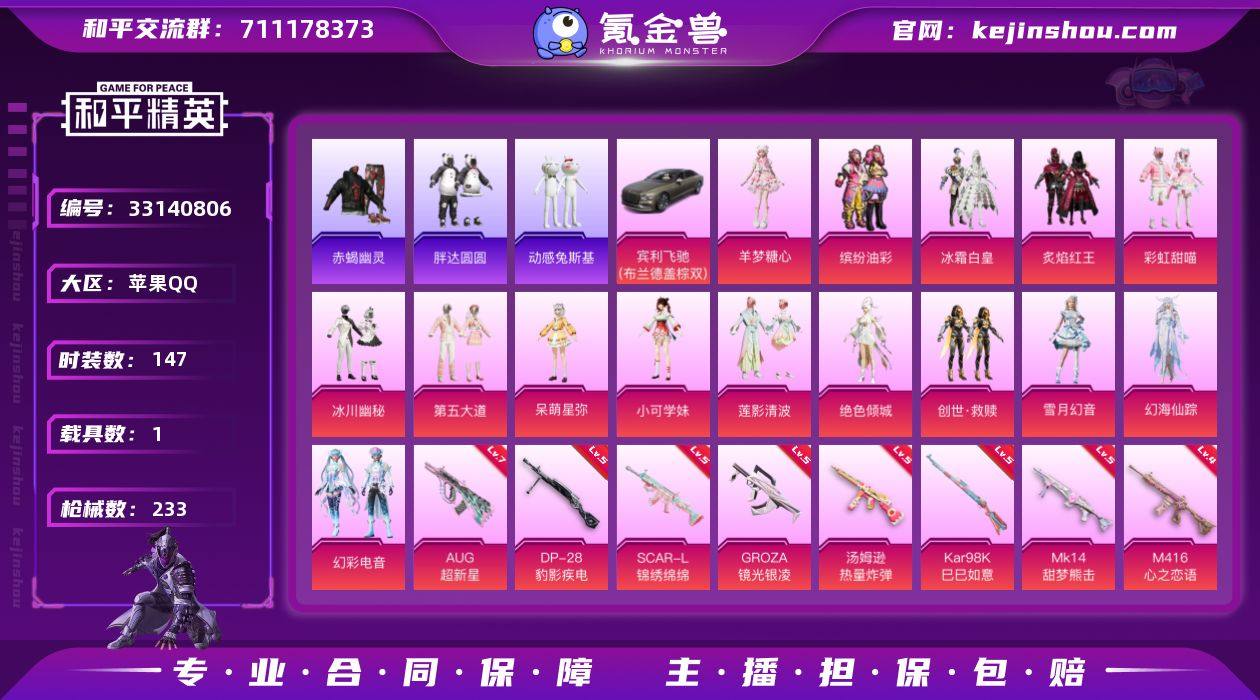 苹果 手Q-15粉装-16特效枪-1载具-7粉色飞行器-76242热力值-9王牌印记-147套装-233枪皮 【热门品类】:粉装-缤纷油彩,套装-赤蝎幽灵,套装-胖达圆圆,套装-动感兔斯基人偶服,套装-龟仙人,套装-红熊茄茄 【粉色载具】:宾利飞驰(布罗德盖棕双色) 【粉色套装】:粉装-缤纷油彩,粉装-冰霜白皇,粉装-炙焰红王,粉装-彩虹甜喵,粉装-冰川幽秘,粉装-第五大道,角色-呆萌星弥,角色-小可学妹,粉装-莲影清波,角色-绝色倾城,套装-创世·救赎,粉装-雪月幻音,角色-幻海仙踪,粉装-幻彩电音,角色-羊梦糖心 【粉色枪皮等级】:AKM-幽焰骑士(三级),SCAR-L-锦绣绵绵(五级),SCAR-L-时空协奏(三级),M416-心之恋语(四级),GROZA-镜光银凌(五级),AUG-超新星(七级),AUG-许七安(三级),汤姆逊-热量炸弹(五级),AKS-74U-星穹咏叹调(四级),Kar98K-巳巳如意(五级),M24-莲影清波(四级),Mk14-甜梦熊击(五级),SPAS-12-蜜语绒猫(一级),M249-彩虹甜喵(二级),DP-28-豹影疾电(五级) 【粉色枪皮】:AKM-幽焰骑士,SCAR-L-锦绣绵绵,SCAR-L-时空协奏,M416-心之恋语,GROZA-镜光银凌,AUG-超新星,AUG-许七安,汤姆逊-热量炸弹,AKS-74U-星穹咏叹调,Kar98K-巳巳如意,M24-莲影清波,Mk1...