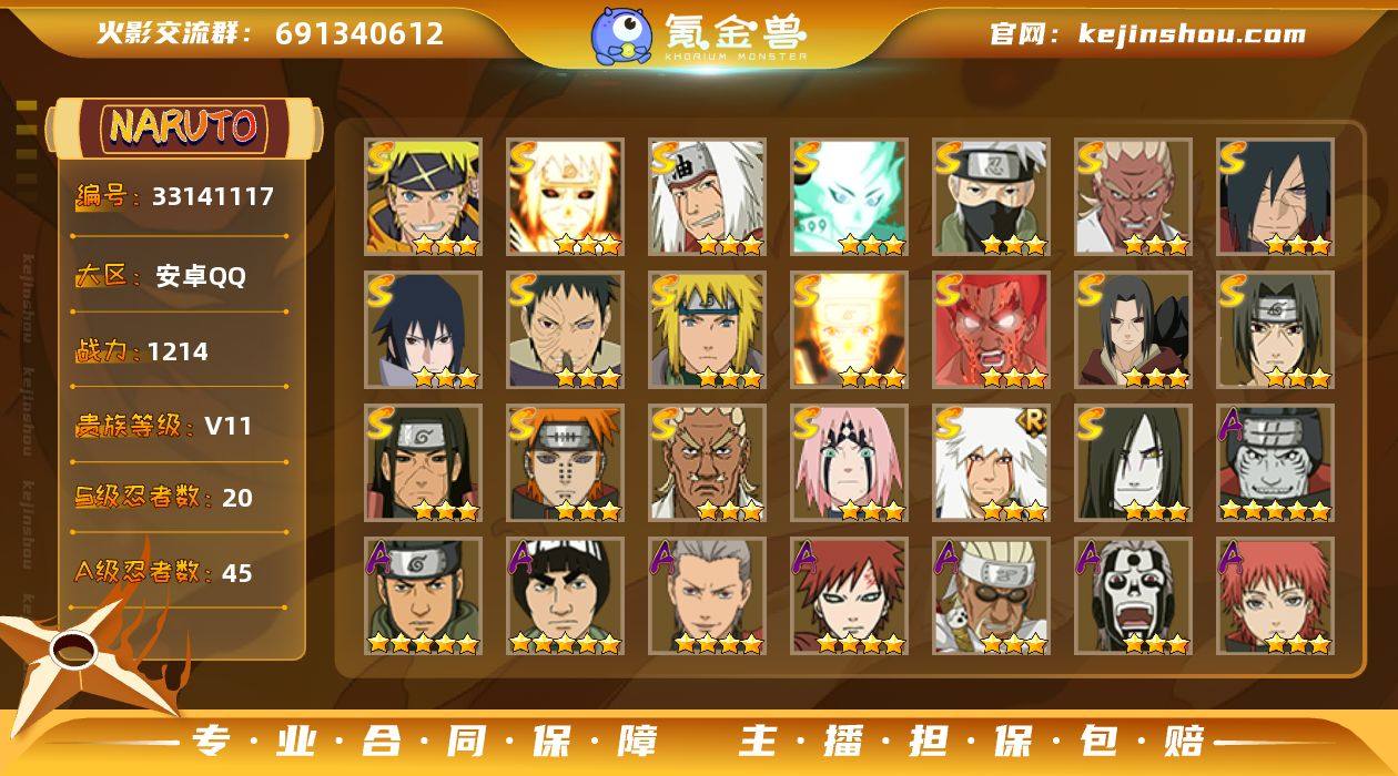 20S级忍者数-45A级忍者数 【S级忍者】:千手柱间「秽土转生」(3星),宇智波鼬「秽土转生」(3星),宇智波斑「秽土转生·解」(3星),春野樱「忍界大战」(3星),宇智波带土「忍界大战」(3星),艾「忍界大战」(3星),宇智波鼬「须佐能乎」(3星),旗木卡卡西「须佐能乎」(3星),艾「四代目雷影」(3星),自来也「舞之豪杰」(3星),大蛇丸(3星),自来也「传说中的三忍」(3星),波风水门(3星),漩涡鸣人「九喇嘛连结」(3星),迈特凯「死门」(3星),佩恩「天道」(3星),宇智波佐助「永恒万花筒」(3星),大筒木舍人「最终章」(3星),波风水门「九喇嘛连结」(3星),漩涡鸣人·宇智波佐助(3星) 【A级忍者】:艾「青年」(2星),长门「青年」(2星),波风水门「青年」(2星),达鲁伊「博人传」(2星),迪达拉(2星),大蛇丸「晓」(2星),奇拉比(2星),奇拉比「忍界大战」(3星),飞段(4星),飞段「死司凭血」(3星),干柿鬼鲛(5星),漩涡博人「桃式显现」(2星),机械鸣人「初始形态」(2星),迈特凯(5星),旗木卡卡西「幻之真容」(2星),桃地再不斩(2星),桃地再不斩「秽土转生」(2星),我爱罗「疾风传」(4星),蝎(3星),蝎「绯流琥」(2星),小南(2星),角都「秽土转生」(2星),猿飞阿斯玛(5星),宇智...