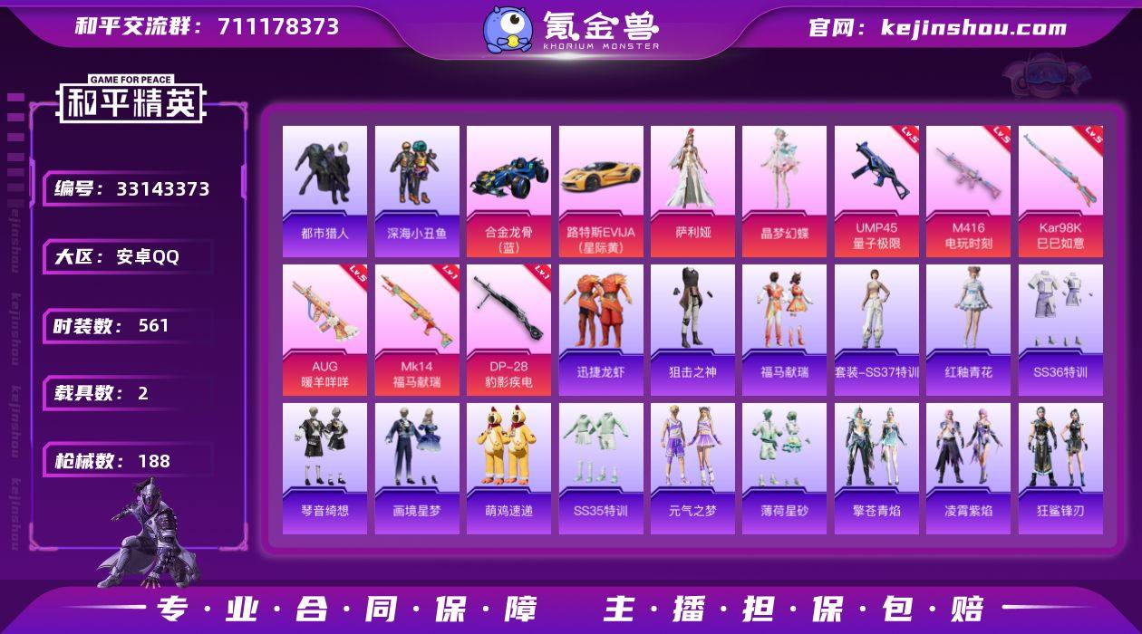 金羽特工全套,16个印记,地铁满天赋,还有一个耐磨龙甲,账号资产多,皮肤枪械时装都有,支持官方验号,安全靠谱 真心想出,价格可聊,喜欢直接拍 送王者抢先服,韩信街头霸王金标 娜可露露 晚莹也是金标,