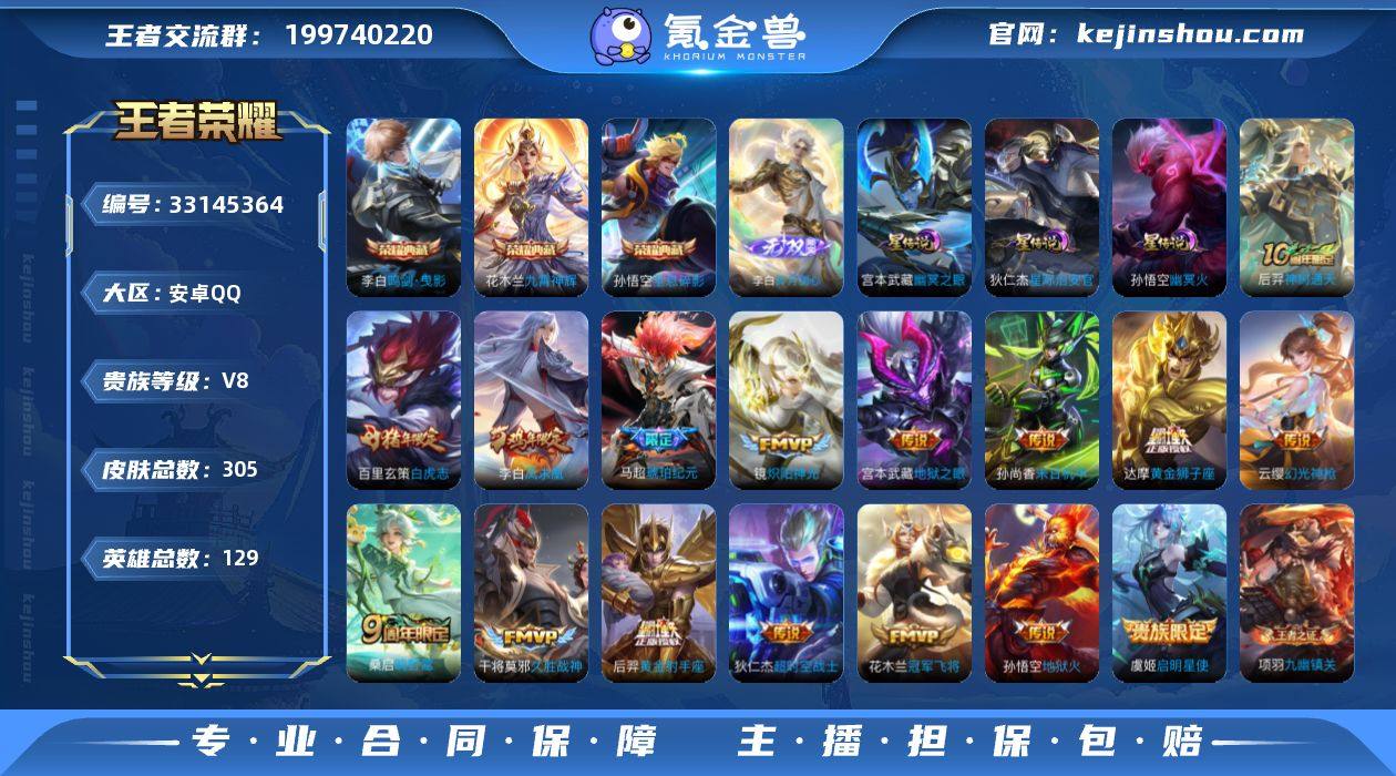 王者20553,不可二次,3834星币,安卓Q-V8-永恒钻石IV段位-129英雄-305皮肤-3典藏皮肤-1无双-16传说-96史诗 【英雄全皮】:敖隐全皮,蒙恬全皮 【荣耀典藏】:孙悟空全息碎影,李白鸣剑曳影,花木兰九霄神辉 【无双皮肤】:李白碎月剑心 【传说皮肤】:后羿神树通天,云缨幻光神枪,桑启鸣野蒿,马超琥珀纪元,镜炽阳神光,虞姬启明星使,干将莫邪久胜战神,达摩黄金狮子座,百里玄策白虎志,花木兰冠军飞将,后羿黄金射手座,李白凤求凰,孙尚香末日机甲,宫本武藏地狱之眼,孙悟空地狱火,狄仁杰超时空战士 【限定皮肤】:姜子牙天穹之誓,李白谪仙醉月,狄仁杰阴阳师,赵云皇家上将,赵云引擎之心,嬴政优雅恋人,嬴政白昼王子,孙尚香蔷薇恋人,鲁班七号狮舞东方,庄周高山流水,芈月重明,芈月幻夜卜梦,吕布猎兽之王,元歌云间偶戏,元歌无心,夏侯惇朔风刀,曹操烛龙,典韦穷奇,典韦蓝屏警告,马可波罗暗影游猎,狄仁杰魔术师,狄仁杰万华元夜,达摩沙漠行僧,项羽海滩派对,老夫子醍醐杖,程咬金演武夺筹,露娜一生所爱,韩信逐梦之影,韩信傲雪梅枪,兰陵王金庭之子,花木兰青春决赛季,花木兰默契交锋,孙悟空大圣娶亲,孙悟空孙行者,牛魔御旌,后羿圣弓游侠,李...