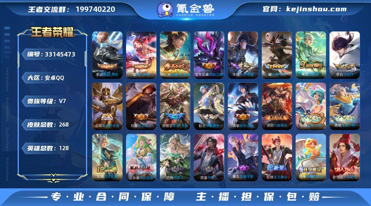 【特价出售】安卓q-V-268皮肤2典藏11传说 【全皮英雄】 刘禅全皮 刘邦全皮 【典藏】 拾光映像 鸣剑曳影 【传说】 神骥赴朔漠 鸣野蒿 零号赤焰 淬星耀世 音你心动男 诗剑行 云鹰飞将 一念神魔 黄金射手座 时之恋人男 地狱之眼 【热门】万灵启世 涂山容容 守夜人 朱雀志 谪仙醉月 山海玄木吟 龙胆 大圣娶亲 拒霜思 冰冠公主 原初追逐者 嘻哈天王 梁祝 狂想玩偶喵 云间偶戏 暗夜猫娘 诗语江南 织梦人 黄忠百相守梦 炽弈燎原 心动手记海诺 燃音魔法 百解令 电玩爆裂旋风 天秀启明 滕王阁序 遇见神鹿 李小龙 水晶猎龙者 暗隐猎兽者 猫狗日记男 猫狗日记女 金属风暴 地狱岩魂 热力回旋 特工魅影 曙光守护者 白蛇 青蛇 黄金分割率 优雅恋人 舞动绿茵 妄想食味 逐浪之夏 心灵战警 修罗 千年之狐 紫霞仙子 心灵骇客 圣诞恋歌 幽灵船长 乘风破浪 圣诞狂欢 末日机甲男 星夜王子 天才门将 绅士熊喵 时之恋人女 暗夜贵公子 街头霸王 暗渊魔法 乐园奇幻夜 鬼剑武藏 德古拉伯爵 单词大作战 冰雪圆舞曲 青焰无极 苍威无极 疑决卦 醍醐杖 万华元夜 克喵 演武夺筹 群星魔术团程咬金 驱傩正仪 未来纪元赵云 沙漠行僧 女仆咖啡 金庭之子 大漠名商 敏锐之力 云中旅人 丁香结 海盐诗旅 皇家上将 擒涛...