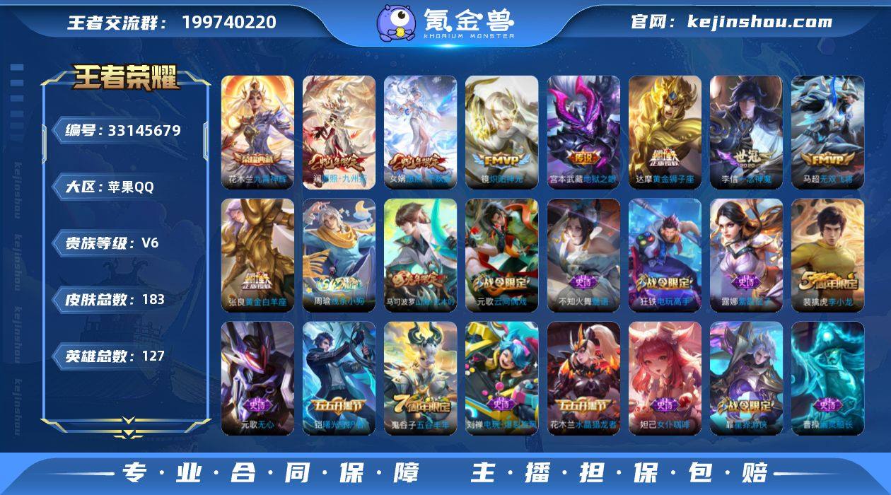 苹果Q-V1-至尊星耀V段位-127英雄-183皮肤-1典藏皮肤-8传说-46史诗 【荣耀典藏】:花木兰九霄神辉 【传说皮肤】:女娲愿照千秋盛,澜愿照九州拓,马超无双飞将,镜炽阳神光,李信一念神魔,张良黄金白羊座,达摩黄金狮子座,宫本武藏地狱之眼 【限定皮肤】:姜子牙天穹之誓,狄仁杰阴阳师,赵云皇家上将,墨子神迹守卫,孙尚香蔷薇恋人,庄周高山流水,元歌云间偶戏,元歌无心,马可波罗山海玄木吟,狄仁杰魔术师,狄仁杰万华元夜,达摩沙漠行僧,项羽海滩派对,老夫子醍醐杖,老夫子航海奇遇记,程咬金演武夺筹,王昭君午后时光,兰陵王金庭之子,亚瑟潮玩骑士王,后羿圣弓游侠,李元芳云中旅人,钟馗驱傩正仪,干将莫邪真爱魔法,雅典娜黎明之约,蔡文姬繁星吟游,鬼谷子原初探秘者,鬼谷子五谷丰年,苏烈千军破阵,百里玄策原初追逐者,梦奇顽趣,沈梦溪大漠名商,明世隐疑决卦,裴擒虎李小龙,裴擒虎擒涛扼浪,狂铁电玩高手,云中君纤云弄巧,嫦娥暖冬兔眠,鲁班大师探海日志,桑启海盐诗旅,暃星界游侠,艾琳女武神,张良古海寻踪,蒙恬荣光圣徽,鬼谷子天穹祈灯,沈梦溪龙舞盛年,刘邦剑破天穹 【年限皮肤】:马可波罗山海玄木吟,女娲愿照千秋盛,澜愿照九州拓 【赛季限...