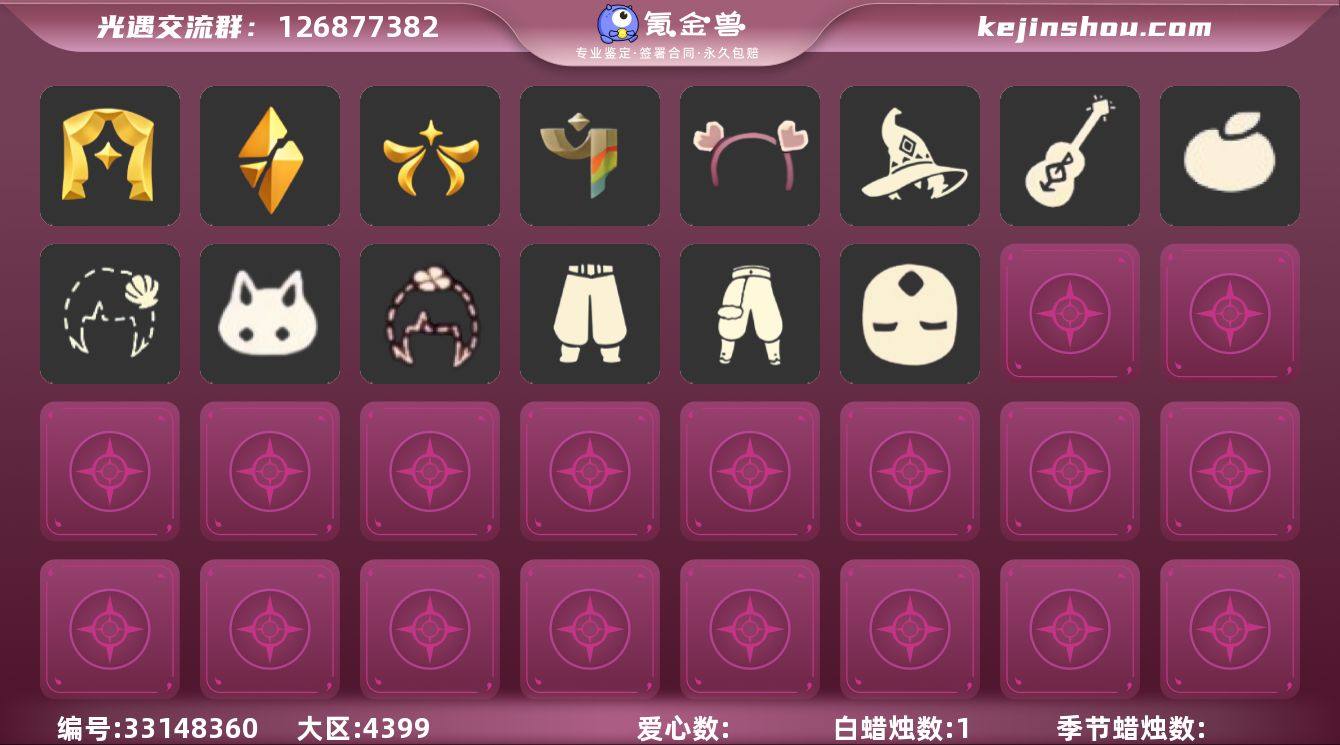 【XQ1064】 ✅7季羽毛白枭双翼遥鲲斗蝶翼斗羚羊,武士裤巫师双马尾夏日阳伞皮皮猫 ✅渠道 :B服✅1.5可换绑 ✅伪0✅最高:0.887最矮:12 887目前:10.986 ✅资源:蜡烛:10爱心:41翼数量:67 ✅毕业地图:无 ✅毕业季节:集结季半,风行季半,表演季,破晓季,欧若拉季,夜行季卡,彩染季 ✅稀有礼包:祥云服饰,巫师帽,双马尾发型,桔子,贝壳发卡,玉兔,心相印发饰,四叶草,青衫落拓,音韵吉他,夏日阳伞,冥龙南瓜,皮皮猫 ✅热门物品:白枭,搓澡巾,武士裤,矮人面具,黑脸,公主头,书虫,正太,高马尾,明制帽,箬笠,花环,虚荣,樱花,猫猫头,竖琴,雨伞