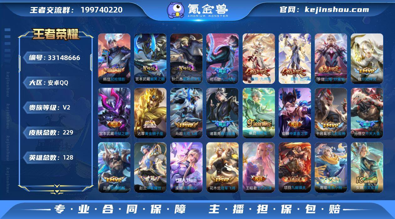 安卓Q-V2-最强王者段位-127英雄-229皮肤-1典藏皮肤-18传说-64史诗 【英雄全皮】:敖隐全皮,阿古朵全皮,空空儿全皮 【荣耀典藏】:韩信弑枪猎影 【传说皮肤】:司马懿九山相柳,司空震愿照山河定,澜愿照九州拓,桑启鸣野蒿,诸葛亮鹤羽星尊,虞姬无限倾心,孙悟空齐天大圣,李信山海炽霜斩,吕布怒海麟威,马超无双飞将,赵云淬星耀世,王昭君乞巧织情,镜炽阳神光,干将莫邪久胜战神,达摩黄金狮子座,花木兰冠军飞将,貂蝉仲夏夜之梦,宫本武藏地狱之眼 【限定皮肤】:蒙犽顽岩魄,姜子牙天穹之誓,狄仁杰阴阳师,赵云皇家上将,嬴政优雅恋人,元歌云间偶戏,马可波罗山海玄木吟,狄仁杰魔术师,项羽海滩派对,兰陵王金庭之子,孙悟空至尊宝,孙悟空齐天大圣,刘备百相守梦,李元芳云中旅人,虞姬无限倾心,诸葛亮鹤羽星尊,铠青龙志,沈梦溪大漠名商,裴擒虎擒涛扼浪,李信山海炽霜斩,上官婉儿梁祝,蒙犽狂想玩偶喵,鲁班大师探海日志,桑启海盐诗旅,阿古朵江河有灵,张良古海寻踪,蒙恬荣光圣徽,鬼谷子天穹祈灯,姬小满妄想食味,沈梦溪龙舞盛年,鲁班七号蔬乡物语,李元芳蔬乡物语,刘邦剑破天穹,程咬金群星魔术团,周瑜熔金海岸 【年限皮肤】:铠青龙志,李信山海...