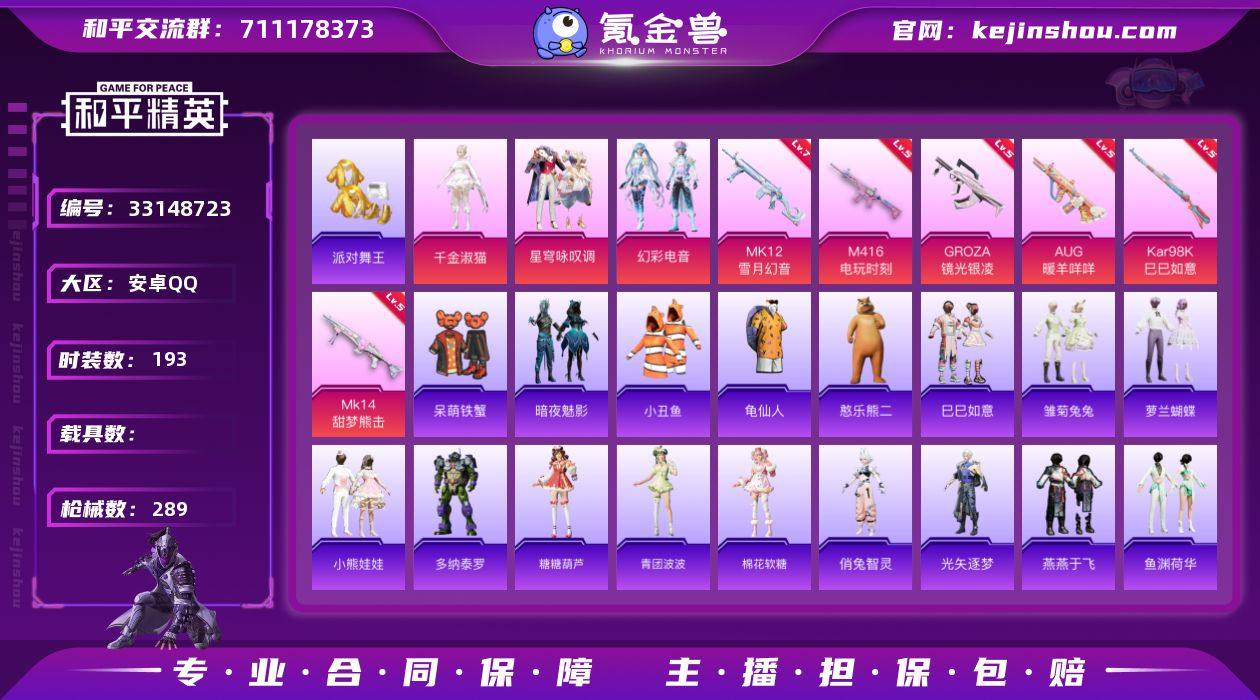 【LHPX2258】193套装/枪械9/装备343/战备204/王牌印记15/热力值81692/五级M416-电玩时刻/五级GROZA-镜光银凌/五级AUG-暖羊咩咩/四级ACE32-萌骑漫游/四级AKS-74U-森灵之息/五级Kar98K-巳巳如意/五级MK14-甜梦熊击/五级Mk14-福马献瑞/七级MK12-雪月幻音/派对舞王/小丑鱼/龟仙人/千金淑猫/星穹咏叹调/幻彩电音/M416电玩时刻/GROZA-镜光银凌/AUG-暖羊咩咩/ACE32-萌骑漫游/AKS-74U-森灵之息/Kar98K-巳巳如意/MK14-甜梦熊击/Mk14-福马献瑞/MK12-雪月幻音/炫彩糖果飞行器/绝对恒星降落伞/银刃赛罗降落伞/炙焰牛王降落伞/暗夜鎏金降落伞/飒粉甜心降落伞/精灵梦叶罗丽降落伞/忍者神龟降落伞/时空协奏降落伞/幻彩电音降落伞/炫彩糖果降落伞/辉云木星降落伞/憨乐熊二/巳巳如意/套装-雪国风尚/炫彩糖果/套装-马上有钱/雏菊兔兔/萝兰蝴蝶/小熊娃娃/多纳泰罗/糖糖葫芦/青团波波/棉花软糖/俏兔智灵/光矢逐梦/燕燕于飞/鱼渊荷华/粉恋花/紫幽梦/蓝冰羽/瑰梦爱神/星影赞美诗/霓虹热舞/极速光影/云朵鹅/雪绒豹/套装-雨过天青/套装-红釉青花/AUG-冰晶雪宝/AKM-夜灯/AKM-彩虹符号/AKM-影袭/AKM-江南烟雨/AKM-生命誓言/AKM-破晓战魂/AKM-缤纷海域/AKM-萌趣颜团子/AKM-虎虎生威/AKM-霓虹街区/AKM-龙的...