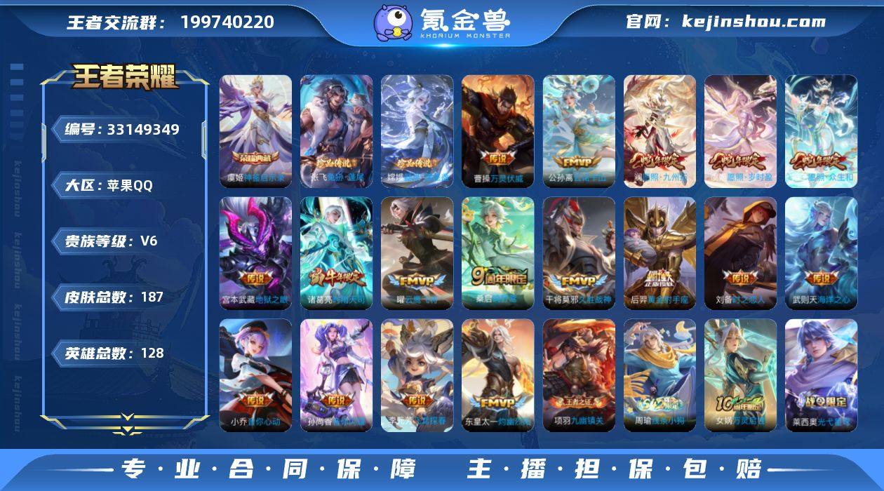 苹果Q-V6-至尊星耀III段位-128英雄-187皮肤-1典藏皮肤-1典藏英雄-2珍品传说-17传说-57史诗 【英雄全皮】:孙权全皮 【荣耀典藏】:武则天英雄,虞姬神鉴启示录 【珍品传说】:张飞兔狲蓬尾,嫦娥器灵落星盏 【传说皮肤】:曹操万灵伏威,公孙离云诺千山,妲己愿照众生和,澜愿照九州拓,虞姬愿照岁时盈,桑启鸣野蒿,东皇太一灼幽烈阳,孙尚香音你闪耀,小乔音你心动,李元芳飞鸢探春,诸葛亮时雨天司,曜云鹰飞将,刘备时之恋人,干将莫邪久胜战神,后羿黄金射手座,宫本武藏地狱之眼,武则天海洋之心 【限定皮肤】:蔡文姬夏日便利店,虞姬夏日便利店,姜子牙天穹之誓,狄仁杰阴阳师,赵云皇家上将,墨子神迹守卫,孙尚香蔷薇恋人,庄周高山流水,狄仁杰魔术师,达摩沙漠行僧,项羽海滩派对,韩信傲雪梅枪,兰陵王金庭之子,雅典娜黎明之约,诸葛亮时雨天司,苏烈千军破阵,高渐离燃音魔法,妲己灵卜魔法,鬼谷子天穹祈灯,沈梦溪龙舞盛年,鲁班七号蔬乡物语,李元芳蔬乡物语,刘邦剑破天穹,周瑜熔金海岸 【年限皮肤】:诸葛亮时雨天司,妲己愿照众生和,澜愿照九州拓,虞姬愿照岁时盈 【赛季限定】:苏烈千军破阵,达摩沙漠行僧,兰陵王金庭之子,鬼谷子天穹祈灯,刘邦剑...