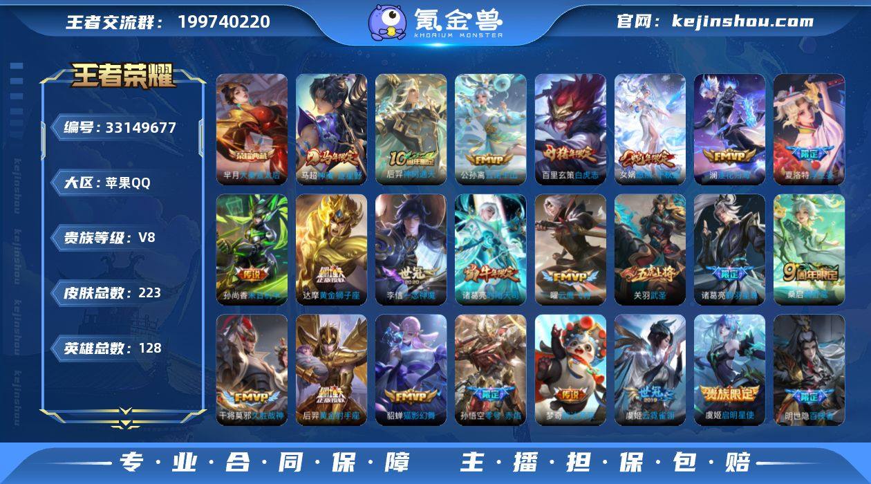 苹果Q-V8-最强王者段位-128英雄-223皮肤-1典藏皮肤-22传说-65史诗 【英雄全皮】:敖隐全皮 【荣耀典藏】:芈月大秦宣太后 【传说皮肤】:马超神骥逐星野,后羿神树通天,公孙离云诺千山,女娲愿照千秋盛,桑启鸣野蒿,澜逐花归海,诸葛亮鹤羽星尊,夏洛特浮生妄,诸葛亮时雨天司,虞姬启明星使,孙悟空零号赤焰,关羽武圣,曜云鹰飞将,李信一念神魔,貂蝉猫影幻舞,干将莫邪久胜战神,虞姬云霓雀翎,达摩黄金狮子座,百里玄策白虎志,梦奇胖达荣荣,后羿黄金射手座,孙尚香末日机甲 【限定皮肤】:李白谪仙醉月,狄仁杰阴阳师,赵云皇家上将,嬴政白昼王子,阿轲迷踪丽影,吕布猎兽之王,周瑜赤莲之焰,元歌云间偶戏,夏侯惇朔风刀,典韦蓝屏警告,马可波罗暗影游猎,狄仁杰魔术师,狄仁杰万华元夜,项羽海滩派对,老夫子醍醐杖,关羽武圣,程咬金演武夺筹,刘邦夺宝奇兵,韩信飞衡,兰陵王驯魔猎人,亚瑟潮玩骑士王,孙悟空至尊宝,孙悟空大圣娶亲,孙悟空零号赤焰,牛魔御旌,虞姬启明星使,钟馗神迹守卫,女娲朔望之晖,雅典娜单词大作战,东皇太一逐梦之光,鬼谷子原初探秘者,诸葛亮时雨天司,诸葛亮鹤羽星尊,黄忠烈魂,铠青龙志,百里玄策白虎志,百里玄策原初追逐者...