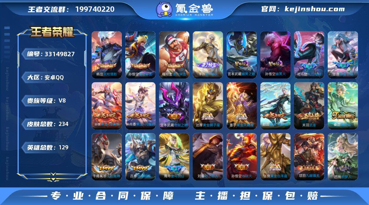 【V8 3典藏 1无双 2星传说 17传说 234皮肤 129英雄】全息碎影,活力突击,弑枪猎影,碎月剑心,落雪白狼,久胜战神,怒海麟威,地狱火,地狱之眼,武圣,黄金狮子座,时之恋人(刘备),黄金白羊座,启明星使,乘龙·淬吴钩,乘龙·问璇玑,乘龙·铭钟鼎,黄金天蝎座,金乌负日,鸣野蒿,九山相柳 周oppo,编号:YYNXX48