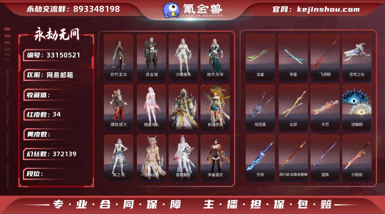 WJ5831,网易邮箱QQ,网易支付无法注销,5月5可换绑,三人段位铂金2,声望1,34红,696金,等级508,收藏值543776,幻丝372139,金砖101,通行证Lv1,变身器,西行劫神君印,千秋匠心凶虎,葫芦兄弟宝葫芦,揽九天,百战枷锁,镇冥司,2674初代机,神乌造像,葫芦兄弟三娃葫芦,御祥云,炎烈珠,甜夜安眠幻梦鲸彩,红色神品,绝代风华,沙漠香风,监兵凶神,星辉魔纱,朱雀星衣,流金晓锦,守墨麒,寒梅傲雪,化生明王,初代玄女,戎金狼,熛怒炼火,樱云天女,阴阳师蛉魂梦使,泣珠龙纱,海之奇,天罚,苍穹之光,赤帝炎轮,叩心,帝星,比羿,龙雀,飞将戟,涯角,西行劫如意金箍棒,天琼,逆晦朔,狂龙,少阳剑,冰魄,惊百里,断昼吟,2674九阴,角色金色皮肤,P5R雨宫莲JOKER,封神录申公豹,武道无穷太极,司天命,幽篁山鬼,灵鹿巫者,朝闻道,玉漱冰骢,墨染千秋剪春漪,紫微星命,封神录龙吉公主,藏雨阁主,金襦玉衫,夏日派对仲夏霜华,夏日派对初夏绯莓,夏日派对半夏晚风,龙之道灵心,龙之影生死局,龙之影龙虎斗,龙之道自知,夏日派对椰风夕照,龙之影精武魂,龙之影过江龙,天狐,问仙,白鹿,烛泪,,麒麟牙,劫涛潮,仙舞,赤影玄印,隐天渊,武道无穷献月...