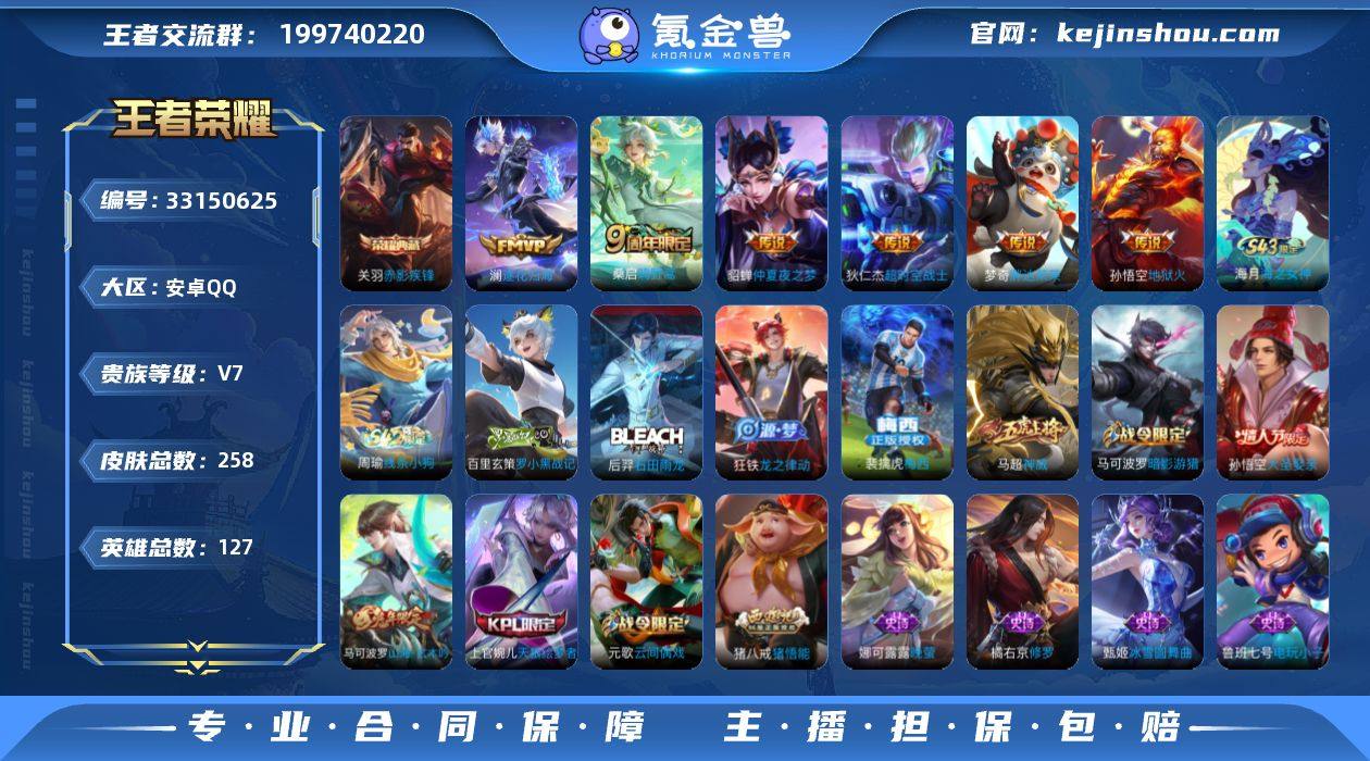 小国标裴擒虎13597战力带梅西 1.2万战马超 万战澜 安卓Q-V7-永恒钻石V段位-127英雄-258皮肤-1典藏皮肤-6传说-71史诗 【英雄全皮】:猪八戒全皮 【荣耀典藏】:关羽赤影疾锋 【传说皮肤】:桑启鸣野蒿,澜逐花归海,梦奇胖达荣荣,貂蝉仲夏夜之梦,孙悟空地狱火,狄仁杰超时空战士 【限定皮肤】:白起狰,大乔绒语心约,狄仁杰阴阳师,赵云皇家上将,嬴政优雅恋人,嬴政白昼王子,庄周云端筑梦师,庄周高山流水,高渐离死亡摇滚,阿轲迷踪丽影,芈月重明,吕布猎兽之王,元歌云间偶戏,曹操烛龙,典韦穷奇,马可波罗暗影游猎,马可波罗山海玄木吟,狄仁杰魔术师,狄仁杰万华元夜,达摩沙漠行僧,项羽海滩派对,老夫子醍醐杖,程咬金演武夺筹,刘邦夺宝奇兵,兰陵王金庭之子,亚瑟潮玩骑士王,孙悟空大圣娶亲,牛魔御旌,李元芳云中旅人,钟馗驱傩正仪,杨玉环遇见飞天,干将莫邪胡桃夹子,雅典娜黎明之约,蔡文姬繁星吟游,太乙真人饕餮,鬼谷子原初探秘者,鬼谷子五谷丰年,苏烈千军破阵,百里玄策原初追逐者,弈星混沌棋,梦奇顽趣,沈梦溪大漠名商,明世隐疑决卦,裴擒虎李小龙,裴擒虎擒涛扼浪,狂铁御狮,米莱狄御霄,云中君纤云弄巧,盾山御銮,猪八戒西部大镖客,猪八戒...