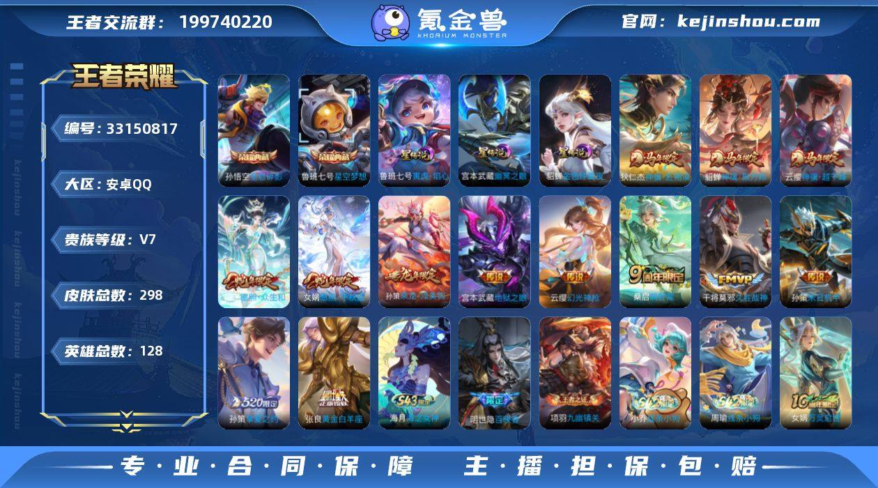 W15510,,可立即换绑无需挂单养号,,,铭文满级,,典藏2,,传说13,,,星传说4,,,按键10,,,夺宝149,,安卓Q-V7-最强王者段位-127英雄-297皮肤-2典藏皮肤-13传说-92史诗 【英雄全皮】:姜子牙全皮,苏烈全皮,空空儿全皮 【荣耀典藏】:孙悟空全息碎影,鲁班七号星空梦想 【传说皮肤】:云缨神骥越千峰,狄仁杰神骥赴朔漠,貂蝉神骥聚万邦,女娲愿照千秋盛,妲己愿照众生和,云缨幻光神枪,桑启鸣野蒿,孙策乘龙淬吴钩,孙策挚爱之约,孙策末日机甲,张良黄金白羊座,干将莫邪久胜战神,宫本武藏地狱之眼 【限定皮肤】:蒙犽顽岩魄,大乔绒语心约,姜子牙天穹之誓,杨戬破阵退雄兵,狄仁杰阴阳师,赵云皇家上将,孙尚香蔷薇恋人,鲁班七号乒乒小将,钟无艳超时空战士,扁鹊奇幻香踪,白起夜都怪侠,芈月幻夜卜梦,吕布猎兽之王,元歌云间偶戏,元歌无心,甄姬落雪兰心,狄仁杰魔术师,狄仁杰万华元夜,达摩星际陆战队,达摩沙漠行僧,项羽海滩派对,程咬金演武夺筹,王昭君午后时光,兰陵王金庭之子,孙悟空孙行者,后羿圣弓游侠,李元芳云中旅人,钟馗驱傩正仪,杨玉环遇见飞天,杨戬潮玩骑兵,干将莫邪胡桃夹子,鬼谷子五谷丰年,黄忠火炮绅士,苏烈玄武志,苏烈...