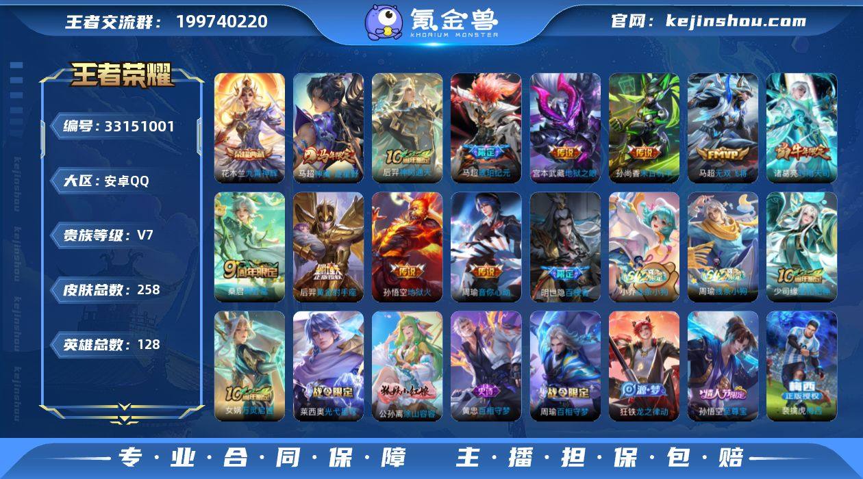 编号A00109 不可二次 v7 258皮肤 1典藏 11传说 九霄神辉 梅西 至尊宝 马超-琥珀纪元 时雨天司 神骥·逐星野 大圣娶亲 瑞麟志 霸王别姬(女) 地狱火 地狱之眼 周瑜-音你心动 黄金射手座 孙尚香-末日机甲 鸣野蒿 无双飞将 决胜骁骑 逐浪之夏 妄想食味 无心 云间偶戏 蔷薇恋人 航海奇遇记 糖果风暴 冰冠公主 街头霸王 暗夜猫娘 黄金分割率 乱世虎臣 李小龙 特工魅影 猫狗日记