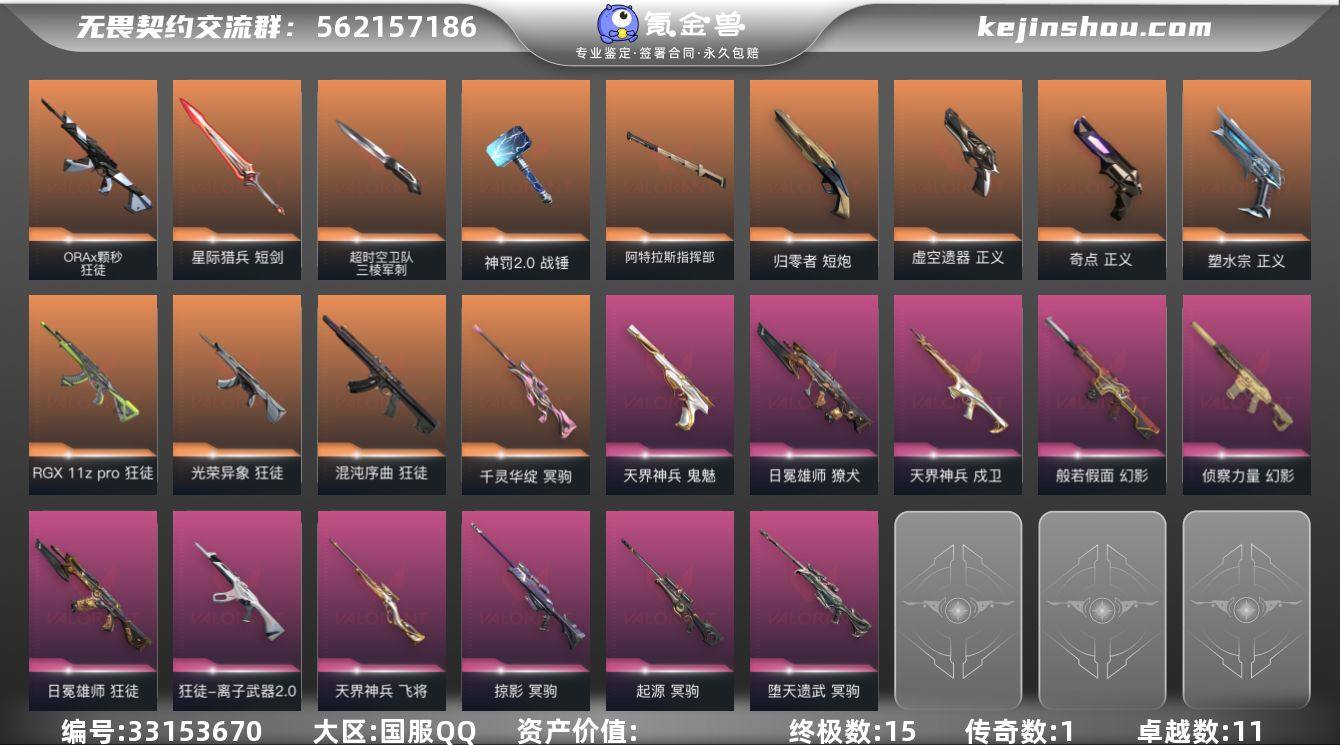 【3.6万库存.三棱军刺.剥皮小刀.碎心裂刃.混沌.颗秒.日冕雄师.侦察.千灵华绽】YXy6605【无二次】[因赛季更新游戏段付以上号为准] 【英雄】:幻棱,炼狱,维斯,暮蝶,钛狐,壹决,铁臂,捷风,雷兹,幽影,不死鸟,贤者,猎枭,蝰蛇,零,芮娜,奇乐,尚勃勒,霓虹,斯凯,夜露,星礈,K/O,海神,盖可,黑梦,钢锁 【近战武器】:近战武器-碎心裂刃,近战武器-超时空卫队 三棱军刺,近战武器-剥皮小刀,近战武器-神罚//2.0 战锤,近战武器-阿特拉斯指挥部 甩棍,近战武器-星际猎兵 短剑 【狂徒】:狂徒-混沌序曲,狂徒-RGX 11z Pro,狂徒-光荣异象,狂徒-ORA x 颗秒,狂徒-日冕雄师,狂徒-离子武器//2.0 【幻影】:幻影-般若假面,幻影-侦察力量 【戍卫】:戍卫-天界神兵 【獠犬】:獠犬-日冕雄师 【冥驹】:冥驹-千灵华绽,冥驹-堕天遗武,冥驹-掠影,冥驹-起源 【飞将】:飞将-天界神兵 【骇灵】:骇灵-无限竞技 【正义】:正义-奇点,正义-塑水宗,正义-虚空遗器 【鬼魅】:鬼魅-天界神兵 【短炮】:短炮-归零者 【卡面】:孵化小能手:破壳鸭 卡面,红鳞松叶 卡面,Clutch 卡面,霓帧牛蛙 卡面,无畏契约GO!第一卷:芮娜 卡面,无畏契约GO!第一卷:零 卡面,《双城之战...