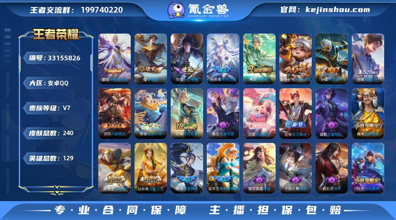 【特价出售】安卓q-V-240皮肤1典藏7传说 【典藏】 神鉴启示录 【传说】 鸣野蒿 寅虎瑞焰 李逍遥 异界灵契 挚爱之约 一念神魔 末日机甲策 【热门】万灵启世 逐霄之志 后羿如梦令 傲雪梅枪 青春决赛季 百木心枪 拒霜思 匿光决锋者 玉兔公主 孙行者 蓝屏警告 原初追逐者 苍穹之光 龙骑士 赞萌露比 黄忠百相守梦 灵蛊蚀心 百解令 电玩爆裂旋风 天秀启明 原初探秘者 李小龙 水晶猎龙者 暗隐猎兽者 猫狗日记男 金属风暴 特工魅影 曙光守护者 特工战影 蔷薇恋人 玩趣恶龙 逐浪之夏 心灵战警 修罗 晚萤 魅语 紫霞仙子 功夫厨神 圣诞恋歌 幽灵船长 乘风破浪 末日机甲男 赏金猎手 永昼 节奏热浪 天才门将 绅士熊喵 偶像歌手 街头霸王 箭羽风息 摇滚巨星 缤纷独角兽 鬼剑武藏 德古拉伯爵 花好人间 蜃楼王 御旌 御銮 朔风刀 疑决卦 醍醐杖 万华元夜 东方不败 演武夺筹 驱傩正仪 未来纪元赵云 重装意志 千军破阵 拳王 沙漠行僧 女仆咖啡 金庭之子 大漠名商 云中旅人 海盐诗旅 科学大爆炸 皇家上将 擒涛扼浪 魅力维加斯 探海日志 水果甜心 古海寻踪 天穹祈灯 高山流水 荣光圣徽 纤云弄巧 电玩高手 吟游魔法 火炮绅士 五谷丰年 夏日便利店蔡文姬 繁星吟游 真爱魔法 乱世虎臣 鹰眼统帅 魔术师...