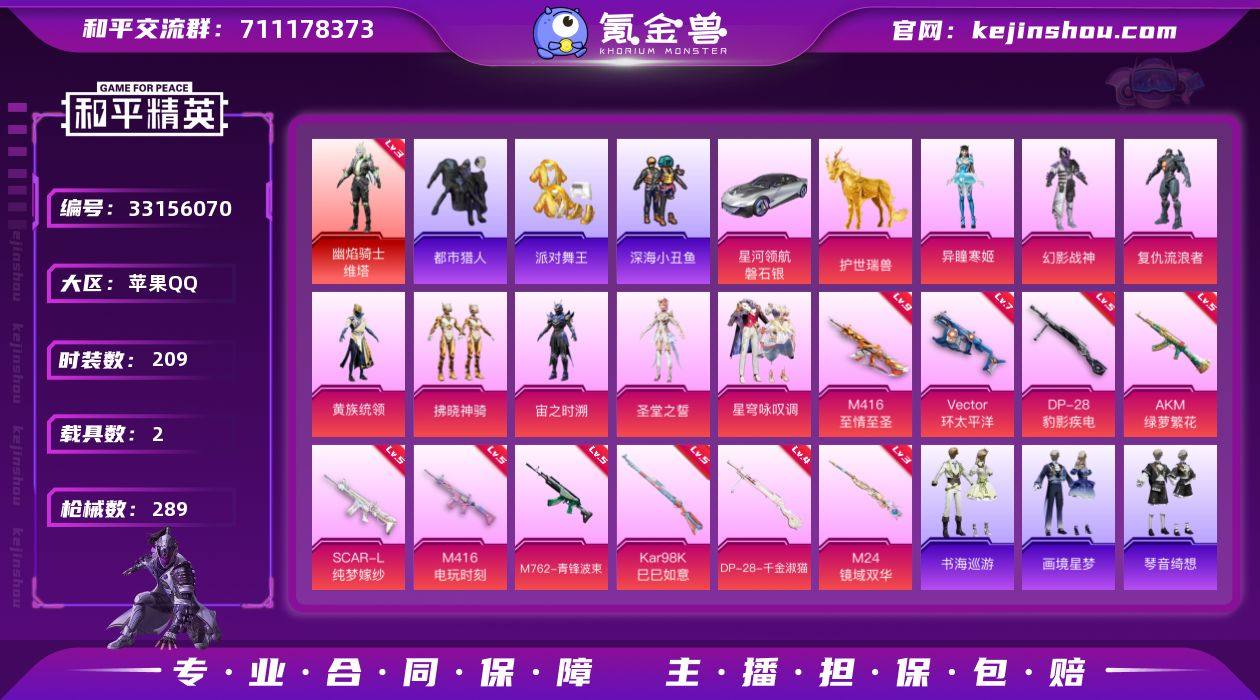 苹果 手Q-1神装-8粉装-13特效枪-2载具-9粉色飞行器-95272热力值-16王牌印记-209套装-289枪皮 【红色神装等级】:幽焰骑士-维塔(三级) 【红色角色神装】:幽焰骑士-维塔 【热门品类】:套装-浪漫天命,套装-都市猎人,套装-派对舞王,套装-深海小丑鱼,套装-小丑鱼,套装-忍者信条,套装-AG战队服,套装-龟仙人,角色-8号机,角色-Mark.06,大砍刀-青龙偃月刀 【粉色套装】:粉装-幻影战神,角色-复仇流浪者,粉装-黄族统领,粉装-拂晓神骑,角色-宙之时溯,角色-圣堂之誓,粉装-星穹咏叹调,角色-异瞳寒姬 【粉色枪皮等级】:AKM-绿萝繁花(五级),SCAR-L-纯梦嫁纱(五级),M416-至情至圣(九级),M416-电玩时刻(五级),M762-青锋波束(五级),Vector-环太平洋(七级),AKS-74U-森灵之息(五级),Kar98K-巳巳如意(五级),M24-镜域双华(三级),Mk14-福马献瑞(五级),AA12-G-萌骑幻想(二级),DP-28-千金淑猫(四级),DP-28-豹影疾电(五级) 【粉色载具】:星河领航(磐石银),护世瑞兽 【粉色枪皮】:AKM-绿萝繁花,SCAR-L-纯梦嫁纱,M416-至情至圣,M416-电玩时刻,M762-青锋波束,Vector-环太平洋,AKS-74U-森灵之息,Kar98K-巳巳如意,M24-镜域双华,Mk14-福马献瑞,AA12-G-萌骑幻想...