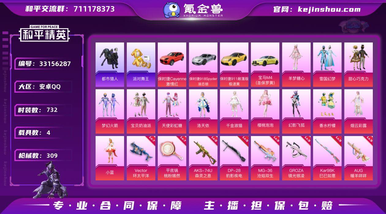 【特价出售】钱包无法注销安卓Q-5稀有4载具13粉装21特效枪13热门201套装309枪皮 104871热力值 14印记 历史卓越王牌18星 【5稀有】 AKM-缤纷海域 都市猎人 浪漫天命 派对舞王 派对舞王(金靴子) 【4载具】 保时捷Cayenne(激情红) 保时捷918Spyder(液态银) 保时捷911敞篷版(极速黄) 宝马M4(圣保罗黄) 【13粉装】 梦幻火箭 小蓝 雪国幻梦 宝贝奶油派 天使彩虹糖 甜心巧克力 千金淑猫 洛天依 烟云彩露 樱桃泡泡 羊梦糖心 幻影飞狐 香水柠檬 【21特效枪】 M416-电玩时刻 (5级) AKM-甜心宝贝 (4级) AKS-74U-森灵之息 (5级) AKM-绿萝繁花 (5级) Kar98K-巳巳如意 (5级) M762-青锋波束 (5级) MG-36-沧焰双生 (5级) DP-28-千金淑猫 (4级) DP-28-豹影疾电 (5级) AUG-暖羊咩咩 (5级) 蜜獾-异瞳寒姬 (4级) UMP45-量子极限 (5级) Mk14-精灵梦叶罗丽 (3级) Mk14-樱桃泡泡 (4级) Mk14-甜梦熊击 (5级) GROZA-镜光银凌 (5级) M249-绝对恒星 (4级) Mk14-福马献瑞 (5级) AA12-G-萌骑幻想 (2级) 平底锅-桃粉嫣然 (7级) Vector-环太平洋 (7级) 【13热门】 小丑鱼 龟仙人 浪漫假日 呆萌铁蟹 鹰眼刺客 迅捷狂鲨 暗影哥特 忍者信条 水银刺客 漫步者 破蛋小黄鸡 M762-奇异狩猎者 S686-奇异狩猎者 【2飞...