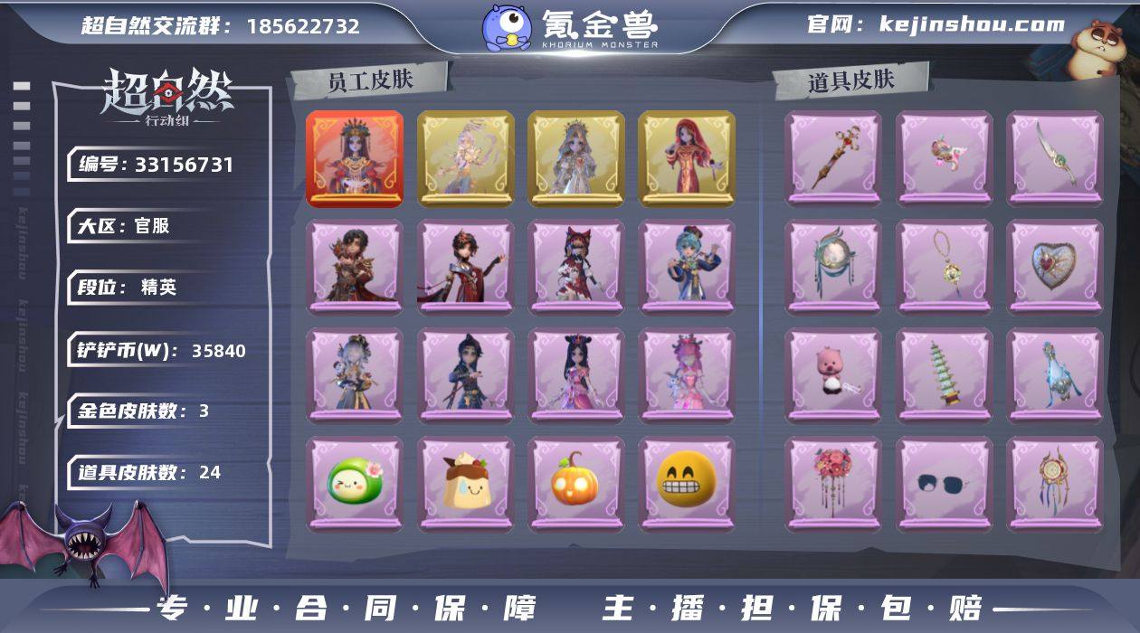 【kyczr1108】巫铃儿-镜生遗梦,薇薇安-圣光之谕,巫铃儿-镜花辞,逍遥-莲华渡,莉莉-情公主,莉莉-除妖小师妹,莉莉-莓果陷阱,薇薇安-仙锋小姐,逍遥-绣春逍影,阿念-迷途僵宝,零-搬开山,小黄-罗丽,刺刀-碧络琅环,传送按钮-昆仑镜,摸金符-紫霄,腰包-宝剑八,短管猎枪-赞萌露比水枪,葫芦-伏妖塔,黄牛能量饮料-青玉抱丹,额外的背包-飞花令,夜视仪-金丝眼镜,音响-happy猫,音响-鸣沙鼓,电击枪-甜蜜泡泡枪,急救包-蔷薇物语,急救包-末章心跳,舞台中心,来财舞,鹏友摇,鸳鸯戏,七仔摇,孤身摇,金城舞,新年摇,抬手,人皇步,KT猫摇,举牌,要糖,带你逃跑吧,拜年,萨卡班甲鱼头套,面具马头套,鱼头怪头套,滑稽头套,嘻嘻头套,哈士奇头套,卑微头套,呆滞头套,烈焰红唇头套,小狗蛇点点头套,大葱明头套,惊魂南瓜头套,樱桃奶油布丁,青团糯糯,像素朋克墨镜,暗夜小恶魔,蝶恋花,梵音莲华,潮汐小海兔,牛啤背包,夜浮船,钗头凤,九色祥鹿,糖果守卫,晚安小熊,卷珠帘,心同野鹤,情语塔,雷霆轩,圣光之誓,流金照庭,鸢尾花,粉嫩小海狸,鸦影,月,兰,爱德华,艾伦,莉莉,巫铃儿,薇薇安,逍遥,阿念,零,小黄,爱丽丝