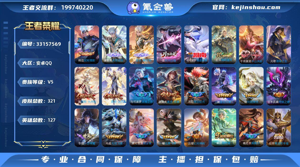 【4000紫金币】安卓Q-V5-最强王者段位-127英雄-321皮肤-1典藏皮肤-2无双-2珍品传说-26传说-90史诗【英雄全皮】:元歌全皮,孙权全皮,橘右京全皮,空空儿全皮,影全皮【荣耀典藏】:韩信弑枪猎影【无双皮肤】:曜器灵螭龙剑,诸葛亮天机白泽【珍品传说】:马可波罗怪盗基德,暃朽木白哉【传说皮肤】:后羿神树通天,干将莫邪千山共赴,元歌诡秘之主,司空震愿照山河定,澜愿照九州拓,云缨幻光神枪,桑启鸣野蒿,马超琥珀纪元,澜逐花归海,橘右京枫霜尽,娜可露露前尘镜,马可波罗深海之息,马超无双飞将,裴擒虎寅虎赤拳,李元芳飞鸢探春,镜炽阳神光,虞姬启明星使,孙悟空零号赤焰,曜云鹰飞将,李信一念神魔,张良黄金白羊座,花木兰冠军飞将,后羿黄金射手座,宫本武藏地狱之眼,孙悟空地狱火,狄仁杰超时空战士【限定皮肤】:蒙犽顽岩魄,大乔绒语心约,姜子牙天穹之誓,杨戬破阵退雄兵,狄仁杰阴阳师,赵云皇家上将,赵云百木心枪,庄周高山流水,高渐离玩趣恶龙,钟无艳超时空战士,芈月幻夜卜梦,吕布御风骁将,元歌云间偶戏,元歌无心,夏侯惇朔风刀,甄姬落雪兰心,马可波罗逐梦之星,马可波罗暗影游猎,马可波罗深海之息,狄仁杰魔术师,狄仁杰万华元夜,达摩沙...