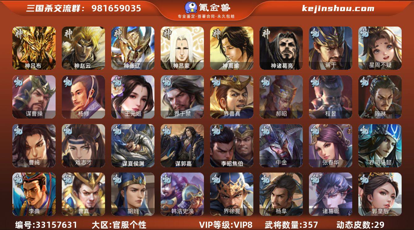 神吕布,神赵云,神张辽,神诸葛亮,星周不疑,谋曹操,杨修,王元姬,界于禁,界曹真,郝昭,陈琳,曹纯,戏志才,蒋干,程昱,谋诸葛亮,谋赵云,谋马超,诸葛瞻,周群,沙摩柯,花鬘,谋孙策,骆统,界朱然,界徐盛,界步练师,左慈,星黄忠,麹义,沮授,公孙康,谋张角,许攸,星董卓,兀突骨,神吕蒙,神周瑜,SP关羽,SP曹仁,SP蔡文姬,乐进,曹昂,诸葛诞,朱灵,文聘,SP姜维,张春华,钟会,曹冲,郭淮,满宠,界王异,界曹操,界司马懿,界夏侯惇,界张辽,界许褚,界郭嘉,李典,曹真,韩浩史涣,陈群,曹叡,曹休,钟繇,司马朗,王基,李通,郭皇后,辛宪英,界甄姬,吕虔,鲁芝,蒯越蒯良,界典韦,界荀彧,界徐晃,杜畿,界曹丕,毌丘俭,界邓艾,张恭,界曹植,界满宠,界郭淮,卞夫人,界陈群,华歆,袁涣,崔琰,毛玠,杨阜,阮慧,谋徐晃,谋于禁,牵招,胡班,李昭焦伯,司马伷,谋郭嘉,谋夏侯渊,牛金,SP孙尚香,关银屏,夏侯霸,马良,关兴张苞,廖化,界马岱,关平,简雍,刘封,界法正,界关兴张苞,界刘备,界关羽,界赵云,SP徐庶,吴懿,周仓,张松,刘谌,夏侯氏,糜竺,马忠,孙乾,李严,...