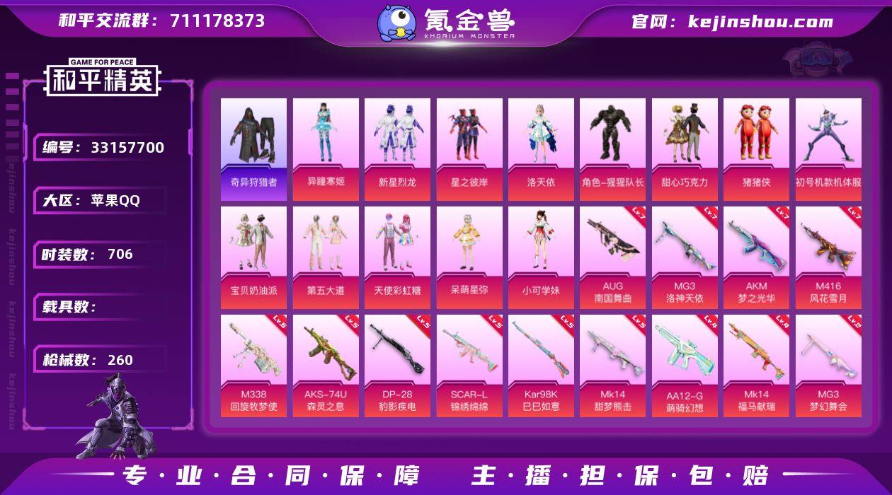 稀有碟中谍上衣、稀有植树节长裤、螳螂甜心巧克力头发粉熊背包超多特效枪附带王者v7