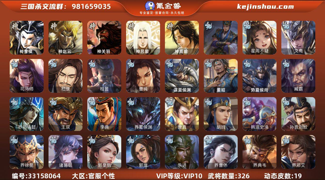 神曹操,神赵云,星周不疑,司马师,嵇康,曹纯,蒋济,程昱,马云騄,谋赵云,谋马超,沙摩柯,花鬘,董允,谋孙策,留赞,界徐盛,文鸯,谋孙尚香,左慈,郑玄,星黄忠,麹义,南华老仙,沮授,兀突骨,神吕蒙,神周瑜,神关羽,势夏侯尚,SP关羽,SP曹仁,SP蔡文姬,乐进,曹昂,诸葛诞,朱灵,文聘,SP姜维,钟会,曹冲,郭淮,满宠,界王异,界曹操,界司马懿,界夏侯惇,界张辽,界许褚,界郭嘉,李典,曹真,韩浩史涣,陈群,曹叡,钟繇,司马朗,王基,郭皇后,孙资刘放,界甄姬,吕虔,鲁芝,界典韦,界荀彧,界徐晃,杜畿,界曹丕,毌丘俭,界邓艾,张恭,界曹植,界满宠,界郭淮,卞夫人,华歆,王双,崔琰,阮慧,谋徐晃,谋于禁,界曹休,胡班,谋夏侯渊,界夏侯渊,臧霸,唐咨,董昭,SP孙尚香,关银屏,夏侯霸,马良,关兴张苞,廖化,界马岱,关平,简雍,刘封,界法正,界关兴张苞,界刘备,界关羽,界张飞,界赵云,界马超,SP徐庶,吴懿,周仓,张松,刘谌,夏侯氏,糜竺,马忠,李严,黄皓,界黄月英,严颜,界伊籍,界卧龙诸葛,界庞统,界刘禅,吕凯,张翼,杨仪,界廖化,傅肜,界简雍,费祎,糜夫...