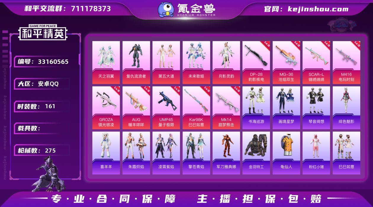【949061】满级地铁 安卓 手Q-5粉装-11特效枪-0载具-3粉色飞行器-84373热力值-12王牌印记-161套装-275枪皮 【热门品类】:角色-军刀雅典娜,套装-金羽特工,套装-龟仙人,套装-粉红小猪 【粉色套装】:粉装-天之羽翼,角色-复仇流浪者,粉装-第五大道,粉装-未来歌姬,角色-月影灵韵 【粉色枪皮等级】:SCAR-L-锦绣绵绵(五级),M416-电玩时刻(五级),GROZA-镜光银凌(五级),AUG-暖羊咩咩(五级),UMP45-量子极限(五级),AKS-74U-森灵之息(五级),Kar98K-巳巳如意(五级),Mk14-甜梦熊击(五级),DP-28-豹影疾电(五级),MG-36-沧焰双生(五级) 【粉色枪皮】:SCAR-L-锦绣绵绵,M416-电玩时刻,GROZA-镜光银凌,AUG-暖羊咩咩,UMP45-量子极限,AKS-74U-森灵之息,Kar98K-巳巳如意,Mk14-甜梦熊击,Mk14-福马献瑞,DP-28-豹影疾电,MG-36-沧焰双生 【粉色飞行器】:炫彩糖果飞行器,英伦信使飞行器,灵猫魔法师飞行器 【粉色降落伞】:蓝莓炮弹降落伞,垂柳戏鸭降落伞,太空嘟嘟降落伞,音爆索尼克降落伞,忍者神龟降落伞,宇宙意志降落伞,千金淑猫降落伞,月影灵韵降落伞,无垠阁降落伞,喜羊羊与灰太狼降落伞,异瞳寒姬降落伞,炫彩糖果降落伞,虹云熊熊降落伞 【稀有套装】:套装...