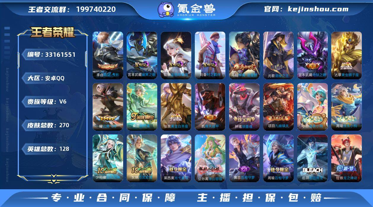 安卓Q-V6-永恒钻石V段位-128英雄-270皮肤-1典藏皮肤-8传说-75史诗 【英雄全皮】:元歌全皮,孙权全皮,敖隐全皮,戈娅全皮,影全皮 【荣耀典藏】:李白鸣剑曳影 【传说皮肤】:马超神骥逐星野,元歌诡秘之主,桑启鸣野蒿,铠绛天战甲,曜云鹰飞将,张良黄金白羊座,达摩黄金狮子座,宫本武藏地狱之眼 【限定皮肤】:蔡文姬夏日便利店,虞姬夏日便利店,姜子牙天穹之誓,杨戬破阵退雄兵,狄仁杰阴阳师,赵云皇家上将,孙尚香蔷薇恋人,庄周高山流水,钟无艳超时空战士,白起夜都怪侠,元歌云间偶戏,元歌无心,甄姬落雪兰心,马可波罗暗影游猎,狄仁杰魔术师,项羽海滩派对,程咬金演武夺筹,李元芳云中旅人,钟馗驱傩正仪,干将莫邪胡桃夹子,雅典娜黎明之约,鬼谷子五谷丰年,苏烈千军破阵,梦奇顽趣,沈梦溪大漠名商,裴擒虎李小龙,裴擒虎擒涛扼浪,云中君纤云弄巧,上官婉儿梁祝,嫦娥拒霜思,嫦娥暖冬兔眠,西施玲珑珍味,鲁班大师探海日志,桑启海盐诗旅,戈娅驭风魔法,艾琳流音漫舞,阿古朵江河有灵,张良古海寻踪,蒙犽百解令,蒙恬荣光圣徽,妲己灵卜魔法,鬼谷子天穹祈灯,沈梦溪龙舞盛年,刘邦剑破天穹,程咬金群星魔术团,镜青焰无极,项羽苍威无极,周瑜熔金海...