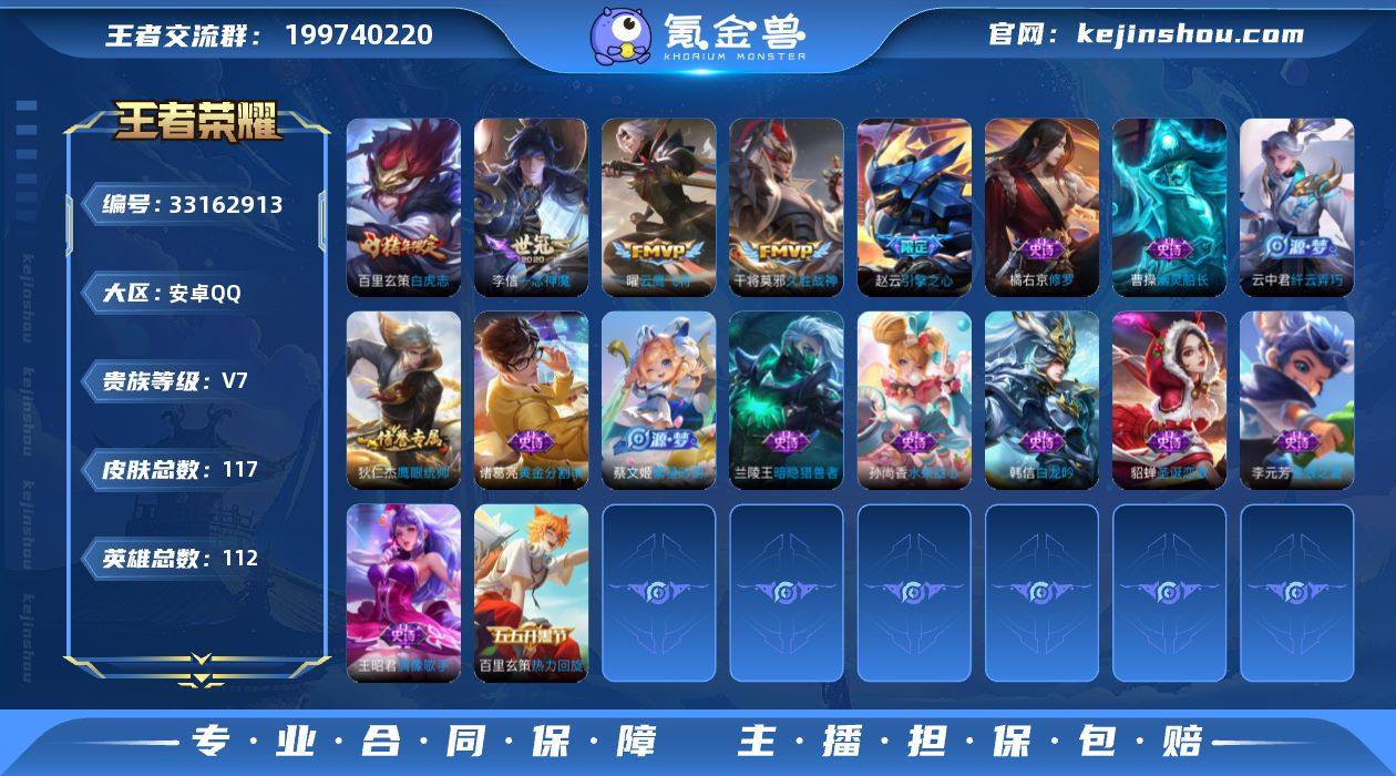 V7 4传说 112英雄 117皮肤 可修改实名 男号