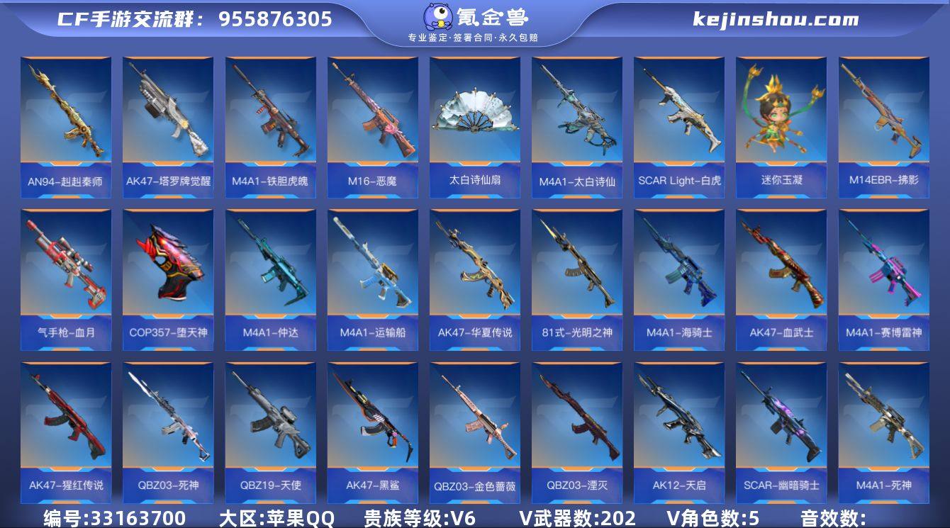 【CFMG1766】VIP6/202V/王者之影/王者之心/王者之蝶/王者之圣/王者之魂/王者幻神/王者之烈/王者之尊/王者白虎/G3A3-凤雏/81式-光明之神/M4A1-仲达/COP357-堕天神/拆弹动画-黑客系统/月神-X/蔡文昭/虹儿/刀锋-枪战王者/魅影/AK47-猩红传说/AK47-血武士/AK47-华夏传说/AK47-黑鲨/AK47-春雅觉醒/AK47-木兰/AK47-塔罗牌觉醒/AK47-谜城烟火/M4A1-雷神/M4A1-黑骑士/M4A1-黑龙/M4A1-死神/M4A1-赛博雷神/M4A1-海骑士/M4A1-运输船/M4A1-太白诗仙/M4A1-铁胆虎魄/SCAR-幽暗骑士/SCAR Light-白虎/AN94-赳赳秦师/M14EBR-拂影/M14EBR-葫芦山庄/M16-恶魔/AK12-天启/QBZ03-湮灭/QBZ03-金色蔷薇/QBZ03-死神/HK417-炎龙铠甲/QBZ19-天使/G36-李星云/FN F2000-十绝阵觉醒/QBZ191-帝皇铠甲/AK103-湮灭/SBR-湮灭/AWM-天龙/AWM-裁决/AWM-大湾溢彩/巴雷特-毁灭/巴雷特-极光/09式狙-天神/98K-黑骑士/RPK-美杜莎/加特林-堡垒/QBB95-极光/寒霜烈龙/双持斯泰尔-天使/M12S-天公/地狱火/地狱烈炎/KSG-天使/KSG-钟馗觉醒/M1887-幽冥玄喵觉醒/USP-神罚/USP-机械迷城/沙鹰-修罗/沙鹰-飞电/气手枪-血月/沙鹰-宇航兔兔/改装GLOCK-木兰/GLOCK18-猎神/改装GLOCK-樱龙·超觉/白骨利刃/女皇利刃-铁胆虎魄/炽芒蝶刃/龙啸...