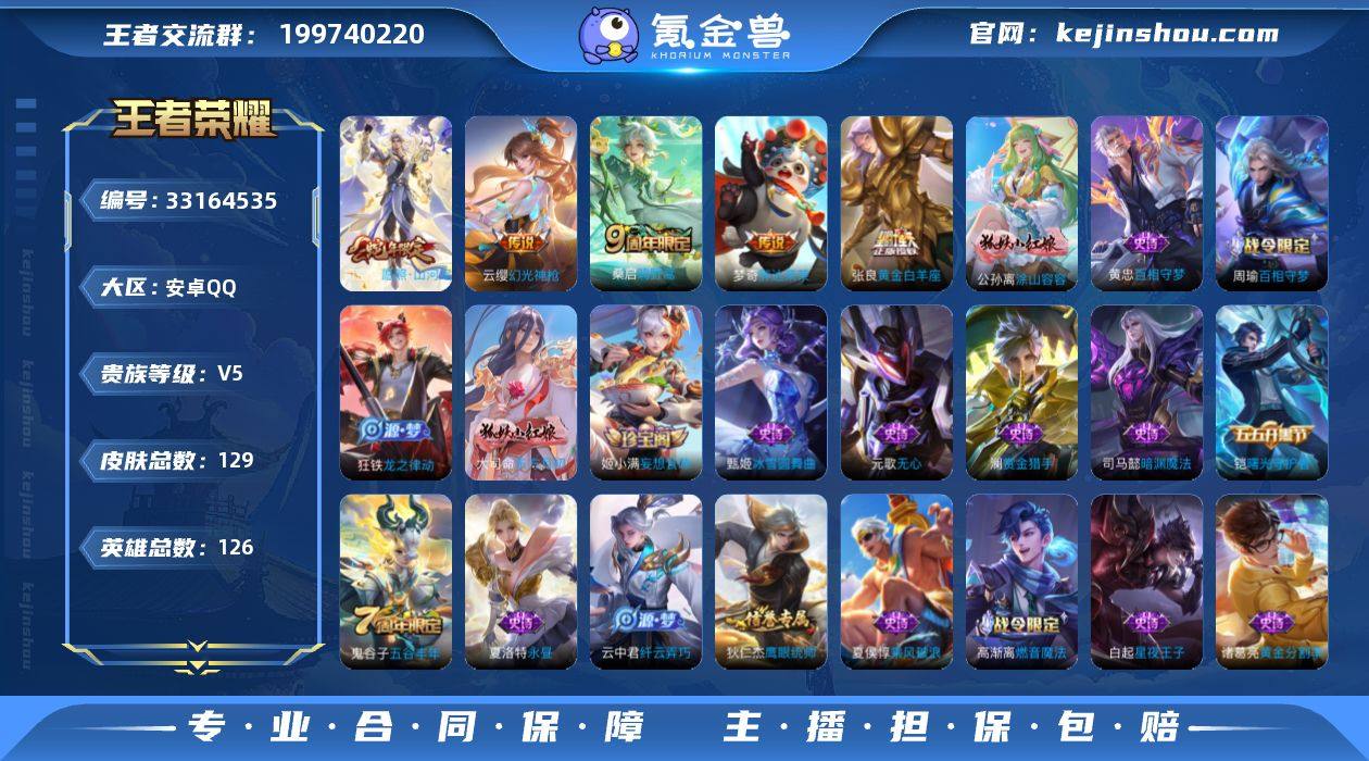 安卓Q-V5-永恒钻石IV段位-126英雄-129皮肤-5传说-42史诗HZ26467 【传说皮肤】:司空震愿照山河定,云缨幻光神枪,桑启鸣野蒿,张良黄金白羊座,梦奇胖达荣荣 【限定皮肤】:姜子牙天穹之誓,狄仁杰阴阳师,赵云皇家上将,元歌无心,项羽海滩派对,李元芳云中旅人,鬼谷子五谷丰年,沈梦溪大漠名商,裴擒虎擒涛扼浪,云中君纤云弄巧,上官婉儿梁祝,鲁班大师探海日志,桑启海盐诗旅,阿古朵江河有灵,张良古海寻踪,蒙犽百解令,蒙恬荣光圣徽,高渐离燃音魔法,妲己灵卜魔法,鬼谷子天穹祈灯,姬小满妄想食味,沈梦溪龙舞盛年,鲁班七号蔬乡物语,李元芳蔬乡物语,刘邦剑破天穹,程咬金群星魔术团,周瑜熔金海岸 【年限皮肤】:司空震愿照山河定 【赛季限定】:沈梦溪大漠名商,李元芳云中旅人,桑启海盐诗旅,裴擒虎擒涛扼浪,鲁班大师探海日志,张良古海寻踪,鬼谷子天穹祈灯,刘邦剑破天穹,姜子牙天穹之誓,东皇太一噬灭天穹,太乙真人谧流熔炉,甄姬逆浪荇歌,蒙恬荣光圣徽,牛魔星界战将 【战令限定】:高渐离燃音魔法,妲己灵卜魔法,鲁班七号蔬乡物语,李元芳蔬乡物语,周瑜百相守梦,孙策百相守梦 【史诗皮肤】:公孙离涂山容容,黄忠百相守梦,周瑜百相守梦,狂铁龙...