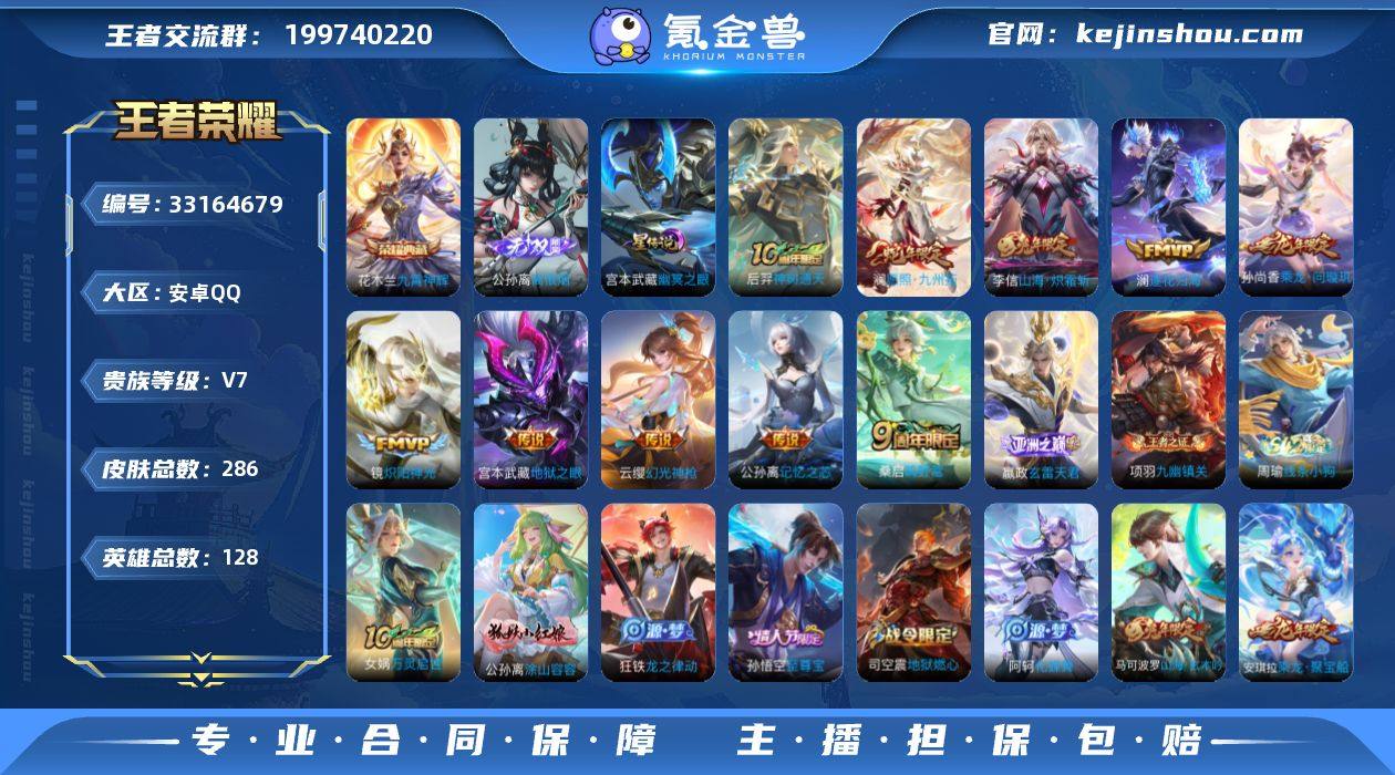 CHC11198,安卓Q-V7-最强王者段位-128英雄-286皮肤-1典藏皮肤-1无双-11传说-74史诗 【英雄全皮】:孙权全皮,狂铁全皮,敖隐全皮 【荣耀典藏】:花木兰九霄神辉 【无双皮肤】:公孙离离恨烟 【传说皮肤】:后羿神树通天,澜愿照九州拓,云缨幻光神枪,嬴政玄雷天君,桑启鸣野蒿,孙尚香乘龙问璇玑,澜逐花归海,公孙离记忆之芯,李信山海炽霜斩,镜炽阳神光,宫本武藏地狱之眼 【限定皮肤】:白起狰,公孙离离恨烟,姜子牙天穹之誓,狄仁杰阴阳师,虞姬凯尔特女王,赵云皇家上将,嬴政优雅恋人,庄周高山流水,钟无艳超时空战士,孙膑妖精王,扁鹊炼金王,芈月重明,芈月白晶晶,周瑜赤莲之焰,元歌无心,夏侯惇朔风刀,甄姬落雪兰心,曹操烛龙,典韦穷奇,马可波罗山海玄木吟,狄仁杰魔术师,狄仁杰万华元夜,达摩沙漠行僧,项羽海滩派对,老夫子醍醐杖,王昭君午后时光,兰陵王驯魔猎人,兰陵王金庭之子,孙悟空至尊宝,牛魔御旌,后羿圣弓游侠,李元芳银河之约,李元芳云中旅人,钟馗驱傩正仪,杨玉环遇见飞天,干将莫邪真爱魔法,太乙真人饕餮,鬼谷子原初探秘者,鬼谷子五谷丰年,苏烈千军破阵,弈星混沌棋,梦奇顽趣,沈梦溪星空之诺,沈梦溪大漠名商,明世隐疑决卦,裴...