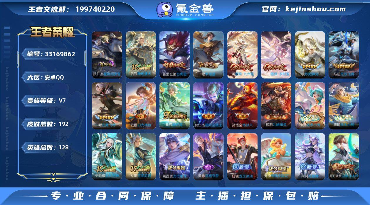 安卓Q-V6-最强王者段位-128英雄-192皮肤-12传说-52史诗 【英雄全皮】:敖隐全皮 【传说皮肤】:后羿神树通天,澜愿照九州拓,虞姬愿照岁时盈,云缨幻光神枪,桑启鸣野蒿,马超无双飞将,曜李逍遥 ,镜炽阳神光,曜云鹰飞将,百里玄策白虎志,孙悟空地狱火,狄仁杰超时空战士 【限定皮肤】:蔡文姬夏日便利店,虞姬夏日便利店,姜子牙天穹之誓,狄仁杰阴阳师,赵云皇家上将,阿轲迷踪丽影,元歌无心,马可波罗山海玄木吟,狄仁杰魔术师,项羽海滩派对,百里玄策白虎志,百里玄策原初追逐者,梦奇顽趣,沈梦溪星空之诺,裴擒虎擒涛扼浪,曜李逍遥 ,西施玲珑珍味,鲁班大师探海日志,艾琳女武神,张良古海寻踪,高渐离燃音魔法,妲己灵卜魔法,鬼谷子天穹祈灯,百里玄策超元猎域,沈梦溪龙舞盛年,刘邦剑破天穹,程咬金群星魔术团,镜青焰无极,项羽苍威无极,周瑜熔金海岸 【年限皮肤】:百里玄策白虎志,马可波罗山海玄木吟,澜愿照九州拓,虞姬愿照岁时盈 【赛季限定】:裴擒虎擒涛扼浪,鲁班大师探海日志,张良古海寻踪,鬼谷子天穹祈灯,刘邦剑破天穹,姜子牙天穹之誓,东皇太一噬灭天穹,太乙真人谧流熔炉,钟馗虚灵犬护,甄姬逆浪荇歌,亚瑟荣光之誓,百里玄策原初追逐者...
