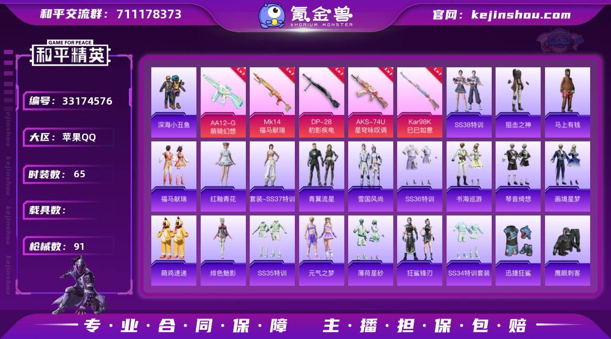 可二次【深海小丑鱼浪漫天命迅捷狂鲨5特效枪 秒换绑不用等】 苹果Q区-23421热力值-65套装-91枪皮 【5特效枪】 Mk14-福马献瑞(5级) AA12-G-萌骑幻想(5级) Kar98K-巳巳如意(5级) AKS-74U-星穹咏叹调(7级) DP-28-豹影疾电(5级)【113热门】 深海小丑鱼 浪漫天命 小丑鱼 迅捷狂鲨 AKM-缤纷海域 M762-彩虹符号 M249-彩虹符号 MG3-幻世战舞者 呆萌铁蟹 鹰眼刺客 M416-蓝色火焰 破蛋小黄鸡 弄潮海豚 夏日倾情 魅力单车 黄色运动 漫步者 海岛探路者 春日漫步 AA12-G-雨过天青 沙漠之鹰-雨过天青 平底锅-画境星梦 P90-紫矿核心 GROZA-紫矿核心 M16A4-雨过天青 AC-VAL-玩趣呆呆 雨过天青 MG-36-薄荷星砂 GROZA-福马献瑞 恋语绒绒 SS34特训 撬棍-冰晶雪宝 福马献瑞 破片手榴弹-爆破雪人 SS30特训 ACE32-冰晶雪宝 鱼渊荷华 青翼流星 PKM-啾咪啾咪 燕燕于飞 SS31特训 SS33特训 SS32特训 巳巳如意 绯色魅影 狂鲨锋刃 SS36特训 异域银装 智谋强哥 战术大师 蜜獾-启元战纹 马上有钱 狙击之神 Vector-创世·救赎 Mk14-紫晶流影 Mk14-薄荷星砂 平底锅-光之冒险 AUG-紫晶流影 AMR-鸡智如我 SS38特训 燃烧瓶-福马献瑞 ACE32-画境星梦 M1加兰德-画境星梦 琴音绮想 破片手榴弹-巳巳如意 AKM-涂鸦街区 A...