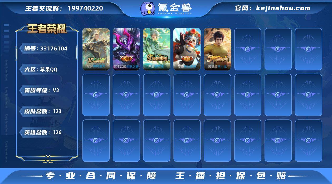 苹果Q 可二次 历史万战金标韩信 5传说126英雄123皮肤 神骥逐星野 神树通天 鸣野蒿 胖达荣荣 地狱之眼 涂山容容 逐霄之志 原初追逐者 玫瑰异探 黄忠百相守梦 李小龙 水晶猎龙者 暗隐猎兽者 地狱岩魂 热力回旋 特工魅影 特工战影 黄金分割率 心灵战警 修罗 白龙吟 千年之狐 紫霞仙子 功夫厨神 幽灵船长 乘风破浪 街头霸王 摇滚巨星 鬼剑武藏 冰雪圆舞曲 花好人间 东方不败 克喵 乱世虎臣 鹰眼统帅 王者荣耀账号