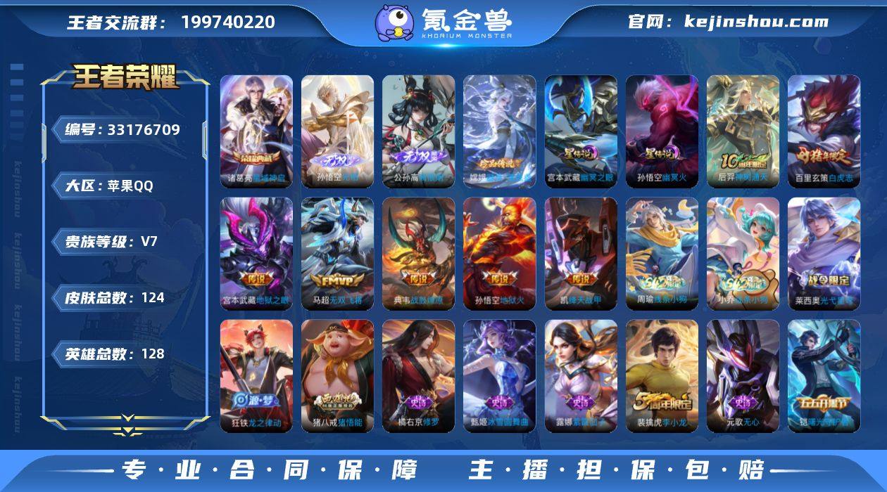 苹果Q-V7-至尊星耀V段位-128英雄-124皮肤-1典藏皮肤-2无双-2珍品传说-14传说-35史诗【荣耀典藏】:诸葛亮星域神启【无双皮肤】:孙悟空无相,公孙离离恨烟【珍品传说】:伽罗沧流箭,嫦娥器灵落星盏【传说皮肤】:云缨神骥越千峰,关羽神骥镇沧海,朵莉亚神骥鸣幻洲,狄仁杰神骥赴朔漠,貂蝉神骥聚万邦,马超神骥逐星野,后羿神树通天,典韦战鼓燎原,马超无双飞将,孙尚香异界灵契,铠绛天战甲,百里玄策白虎志,宫本武藏地狱之眼,孙悟空地狱火【限定皮肤】:公孙离离恨烟,姜子牙天穹之誓,狄仁杰阴阳师,赵云皇家上将,孙尚香蔷薇恋人,孙尚香异界灵契,庄周高山流水,元歌无心,狄仁杰魔术师,达摩沙漠行僧,项羽海滩派对,李元芳云中旅人,苏烈千军破阵,百里玄策白虎志,沈梦溪大漠名商,裴擒虎李小龙,裴擒虎擒涛扼浪,猪八戒猪悟能,上官婉儿梁祝,嫦娥拒霜思,张良古海寻踪,蒙犽百解令,鬼谷子天穹祈灯,沈梦溪龙舞盛年,鲁班七号蔬乡物语,李元芳蔬乡物语,刘邦剑破天穹,程咬金群星魔术团,周瑜熔金海岸【年限皮肤】:百里玄策白虎志【赛季限定】:苏烈千军破阵,达摩沙漠行僧,沈梦溪大漠名商,李元芳云中旅人,裴擒虎擒涛扼浪,张良古海寻踪,鬼谷子天穹祈灯,...