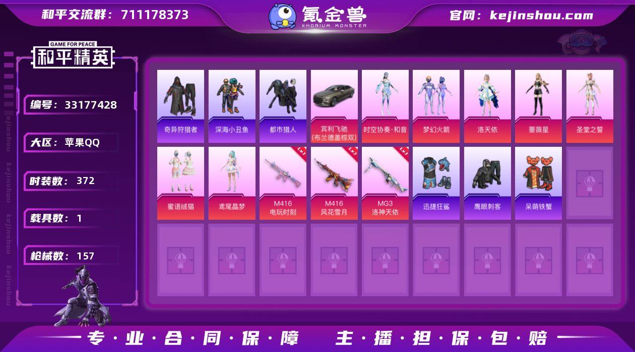 【稀有枪皮】14-樱桃泡泡,M416电玩时刻,ACE32-萌骑漫游,DP-28-豹影疾电,蜜獾-异瞳寒姬,Kar98K-巳巳如意,14-福马献瑞,M416风花雪月,MG3洛神天依