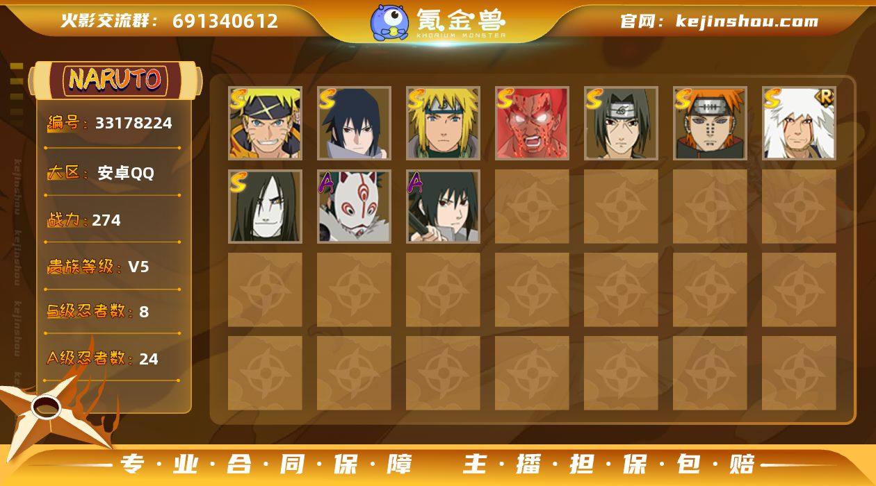 HY110336|【可实名】可二次 274w战力 v5 安卓QQ 2861区 S忍者数:8 A忍者数:24 时装12安卓QQ 2861区 S忍者数:8 A忍者数:24 忍者:漩涡鸣人·宇智波佐助,宇智波佐助「永恒万花筒」,迈特凯「死门」,自来也「舞之豪杰」,宇智波鼬「须佐能乎」,佩恩「天道」,波风水门,大蛇丸,小南「神驹佑将」,迈特凯「青春爆炸」,宇智波泉奈,日向宁次「忍界大战」,不缘,长门「青年」,艾「青年」,达鲁伊「五代目雷影」,不风,神秘面具男「忍者之路」,奇拉比「忍界大战」,黑土「四代目土影」,宇智波佐助「须佐能乎」,漩涡鸣人「九尾查克拉」,药师兜「半蛇斗篷」,宇智波佐助「万花筒写轮眼」,飞段「死司凭血」,飞段,迪达拉,我爱罗「疾风传」,蝎,干柿鬼鲛,猿飞阿斯玛,迈特凯,二位由木人「奇拉比落风传」,佩恩「畜生道」,日向花火「武当宗师」,佩恩「地狱道」,雨琉「羁绊」,野原琳「漂泊浪客」,佐井「最终章」,御手洗红豆「新春限定」,佩恩「饿鬼道」,奈良鹿丸「最终章」,佩恩「人间道」,天天「峨眉宗师」,枫「新佩恩六道」,萨姆伊「新春限定」,鬼灯满月「忍刀七人众」,宇智波鼬「红夜之刃」,漩涡鸣人「中秋限定」,贰「火之意志继承者」,羽高「新佩恩六道」,李洛克「截拳宗师」,汉「新佩恩六道」,日向雏田...