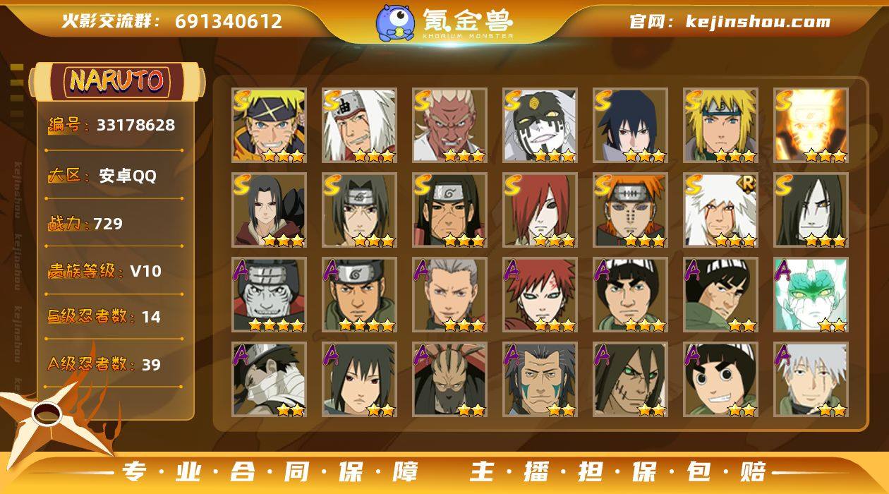 可免费转苹果 V10 729万战力 14S-39A 止水80片 九喇嘛水门94片 红夜面具男80片 舍人60片 十尾带土64片 TT1907 【S级忍者】:长门「秽土转生」(3星),千手柱间「秽土转生」(3星),宇智波鼬「秽土转生」(3星),艾「忍界大战」(3星),宇智波鼬「须佐能乎」(3星),自来也「舞之豪杰」(3星),大蛇丸(3星),自来也「传说中的三忍」(3星),波风水门(3星),漩涡鸣人「九喇嘛连结」(3星),佩恩「天道」(3星),宇智波佐助「永恒万花筒」(3星),大筒木桃式(3星),漩涡鸣人·宇智波佐助(3星) 【A级忍者】:艾「青年」(2星),长门「青年」(2星),波风水门「青年」(2星),波风水门「新春限定」(2星),大蛇丸「晓」(2星),奇拉比「忍界大战」(2星),飞段(3星),飞段「死司凭血」(2星),干柿鬼鲛(4星),漩涡博人「桃式显现」(2星),漩涡鸣人「仙人模式」(2星),漩涡鸣人「九尾查克拉」(2星),迈特凯(3星),迈特凯「忍界大战」(2星),旗木卡卡西「幻之真容」(2星),桃地再不斩「秽土转生」(2星),我爱罗「疾风传」(3星),蝎(2星),蝎「绯流琥」(2星),角都「秽土转生」(2星),猿飞阿斯玛(4星),宇智波鼬「夏日限定」(2星),宇智波佐助「须佐能乎」(2星),宇智波佐助「疾风传咒印」(2星),宇智波...