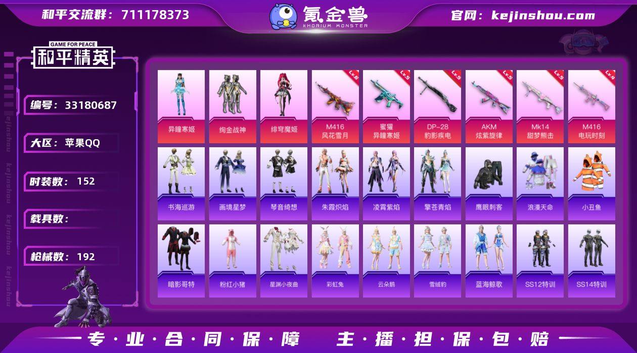 苹果【小号 295扭蛋碎片 套装-暗影哥特/M416-风花雪月(六级)/M416-电玩时刻(四级)/套装-小丑鱼/粉装-绚金战神】 手Q-3粉装-9特效枪-0载具-2粉色飞行器-54988热力值-8王牌印记-152套装-192枪皮 【热门品类】:套装-浪漫天命,套装-小丑鱼,套装-暗影哥特,套装-粉红小猪 【粉色套装】:粉装-绚金战神,角色-绯穹魔姬,角色-异瞳寒姬 【粉色枪皮等级】:AKM-炫紫旋律(五级),M416-风花雪月(六级),M416-电玩时刻(四级),AUG-花中眠(三级),蜜獾-异瞳寒姬(五级),UMP45-萌骑冒险(五级),AKS-74U-森灵之息(五级),Mk14-甜梦熊击(五级),DP-28-豹影疾电(五级) 【粉色枪皮】:AKM-炫紫旋律,M416-风花雪月,M416-电玩时刻,AUG-花中眠,蜜獾-异瞳寒姬,UMP45-萌骑冒险,AKS-74U-森灵之息,Mk14-甜梦熊击,DP-28-豹影疾电 【粉色飞行器】:炫彩糖果飞行器,宁雨蝶飞行器 【粉色降落伞】:香水柠檬降落伞,王牌四分卫降落伞,忍者神龟降落伞,宁雨蝶降落伞,无垠阁降落伞,异瞳寒姬降落伞,炫彩糖果降落伞 【稀有套装】:套装-雪国风尚,套装-炫彩糖果,角色-奈斯,套装-迅捷龙虾,套装-星渊小夜曲,套装-彩虹兔,套装-云朵鹅,套装-雪绒豹,套装-蓝海鲸歌,套装-朱霞炽焰,套装-凌霄...