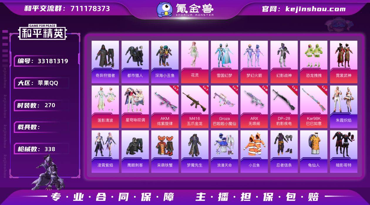 雪国 小丑鱼主套 都市 眼罩 奇异狩猎者 战队服 满级地铁苹果 手Q-8粉装-9特效枪-0载具-5粉色飞行器-104917热力值-18王牌印记-270套装-338枪皮 【热门品类】:粉装-雪国幻梦,粉装-梦幻火箭,套装-浪漫天命,套装-都市猎人,套装-深海小丑鱼,套装-小丑鱼,套装-奇异狩猎者,套装-忍者信条,套装-龟仙人,套装-暗影哥特,角色-Mark.06 【粉色套装】:粉装-幻影战神,粉装-雪国幻梦,粉装-梦幻火箭,粉装-恐龙拽拽,粉装-霓裳武神,粉装-莲影清波,粉装-星穹咏叹调,角色-花灵 【粉色枪皮等级】:AKM-炫紫旋律(七级),M416-五爪金龙(七级),GROZA-巴啦啦小魔仙(七级),ARX-无垠阁(六级),AKS-74U-森灵之息(五级),Kar98K-巳巳如意(五级),Mk14-福马献瑞(二级),AA12-G-萌骑幻想(三级),DP-28-豹影疾电(五级) 【粉色枪皮】:AKM-炫紫旋律,M416-五爪金龙,GROZA-巴啦啦小魔仙,ARX-无垠阁,AKS-74U-森灵之息,Kar98K-巳巳如意,Mk14-福马献瑞,AA12-G-萌骑幻想,DP-28-豹影疾电 【粉色飞行器】:炫彩糖果飞行器,梦幻火箭飞行器,镜光幻境飞行翼,星梦奇缘飞行器 【粉色降落伞】:幻影战神降落伞,梦幻火箭降落伞,王牌四分卫降落伞,炙焰牛王降落伞,暖熊萌萌降落伞,垂柳戏鸭降...