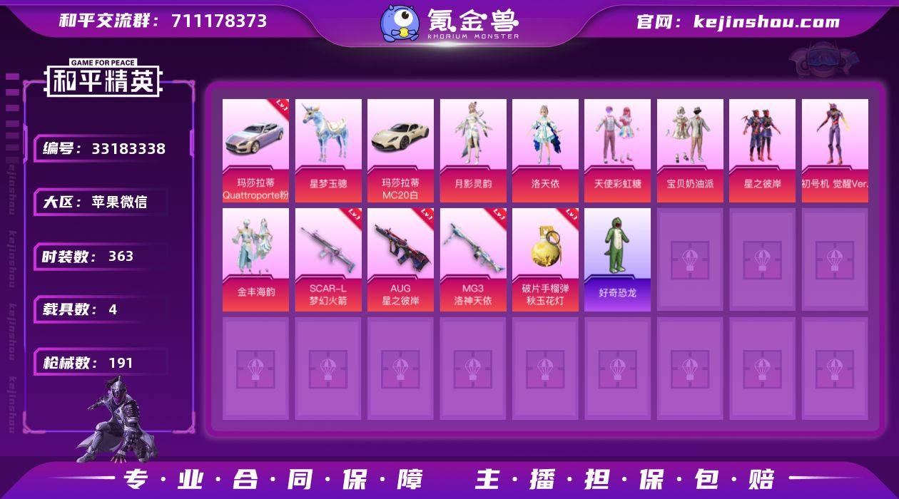 1红装 11粉装 18特效枪 4载具 7印记 可二次 可修改实名
