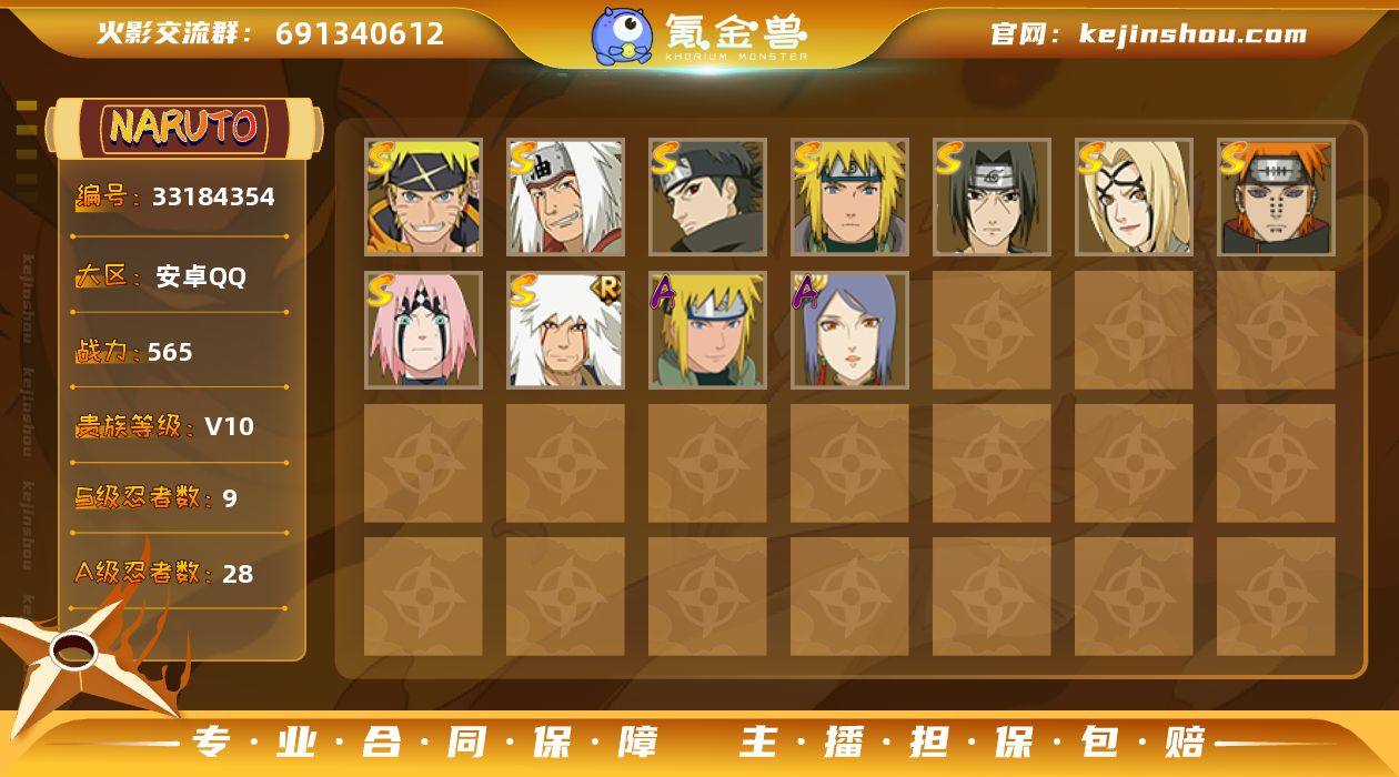 HY22136|【可实名】可二次 565w战力 v10 安卓QQ 3792区 S忍者数:9 A忍者数:28 时装14安卓QQ 3792区 S忍者数:9 A忍者数:28 忍者:漩涡鸣人·宇智波佐助,自来也「传说中的三忍」,宇智波止水「须佐能乎」,春野樱「忍界大战」,自来也「舞之豪杰」,纲手「百豪」,宇智波鼬「须佐能乎」,佩恩「天道」,波风水门,小南「神驹佑将」,迈特凯「青春爆炸」,纲手「妖怪奇谭」,大野木「侠隐江湖」,宇智波泉奈,蝎「绯流琥」,日向雏田「最终章」,漩涡博人「桃式显现」,小南「漂泊浪客」,不缘,不风,波风水门「青年」,黑土「四代目土影」,加藤断,小南「新春限定」,千代「近松十人卫」,秋道丁次「忍界大战」,猿飞阿斯玛「秽土转生」,春野樱「百豪」,飞段「死司凭血」,飞段,迪达拉,我爱罗「疾风传」,蝎,干柿鬼鲛,宇智波鼬,猿飞阿斯玛,迈特凯,二位由木人「奇拉比落风传」,佩恩「畜生道」,重吾「忍界大战」,日向花火「武当宗师」,佩恩「地狱道」,雨琉「羁绊」,野原琳「漂泊浪客」,佐井「最终章」,御手洗红豆「新春限定」,夕日红「冬日限定」,马基,佩恩「饿鬼道」,犬塚花,奈良鹿丸「最终章」,佩恩「人间道」,白「秽土转生」,天天「峨眉宗师」,鬼灯满月「忍刀七人众」,贰「火之意志继承者」,春野樱「忍者少...