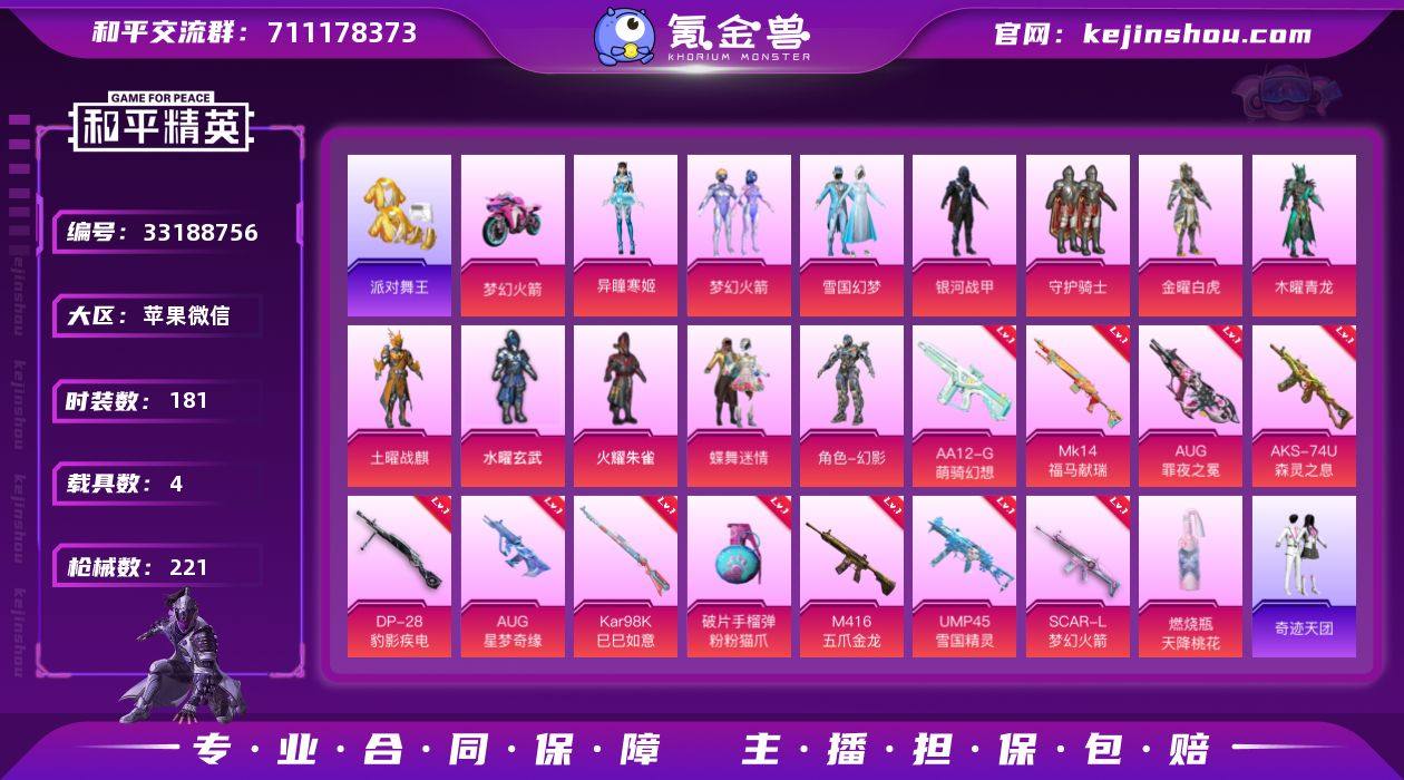 【6级星梦奇缘冰雪女王都市金鞋梦幻苏尔南2钻 11粉装13特效枪4载具】 苹果V区-86235热力值-181套装-221枪皮 【4载具】 玛莎拉蒂金色 玛莎拉蒂蓝色 玛莎拉蒂粉色 双人摩托梦幻火箭【2稀有】 派对舞王 派对舞王(金靴子)【11粉装】 梦幻火箭 雪国幻梦 蝶舞迷情 火曜朱雀 水曜玄武 土曜战麒 木曜青龙 金曜白虎 守护骑士 银河战甲 角色-异瞳寒姬【13特效枪】 SCAR-L-梦幻火箭(5级) M416-五爪金龙(7级) UMP45-雪国精灵(7级) 燃烧瓶-天降桃花(5级) Mk14-福马献瑞(5级) AA12-G-萌骑幻想(4级) AKS-74U-森灵之息(5级) AUG-罪夜之冕(4级) 烟雾弹-好运连连(3级) 破片手榴弹-粉粉猫爪(7级) AUG-星梦奇缘(6级) Kar98K-巳巳如意(5级) DP-28-豹影疾电(5级)【41热门】 M416-蓝色火焰 GROZA-春暖花开 长空猛禽 银河战甲 拳皇97八神庵 牛气冲天 霓虹街区 朱雀圣者 仓鼠灰灰 雪山精英(老6服) 奇迹天团 破蛋小黄鸡 迅捷狂鲨 极速红龙 团圆交子 瑞龙福将 纯白誓言 M416-仓鼠灰灰 白色伏地魔 SS6特训 SS25特训 SS23特训 Mini14-梦幻火箭 M762-乌木金纹 AWM-不夜海上花 AKM-缤纷海域 M416-乌木金纹 AKM-环太平洋 SCAR-L-玉兔迎春 M762-天降萌叽 Mk47-乌木金纹 SKS-糯团青竹 UZI-娇憨猪猪 UMP45-蓝色...